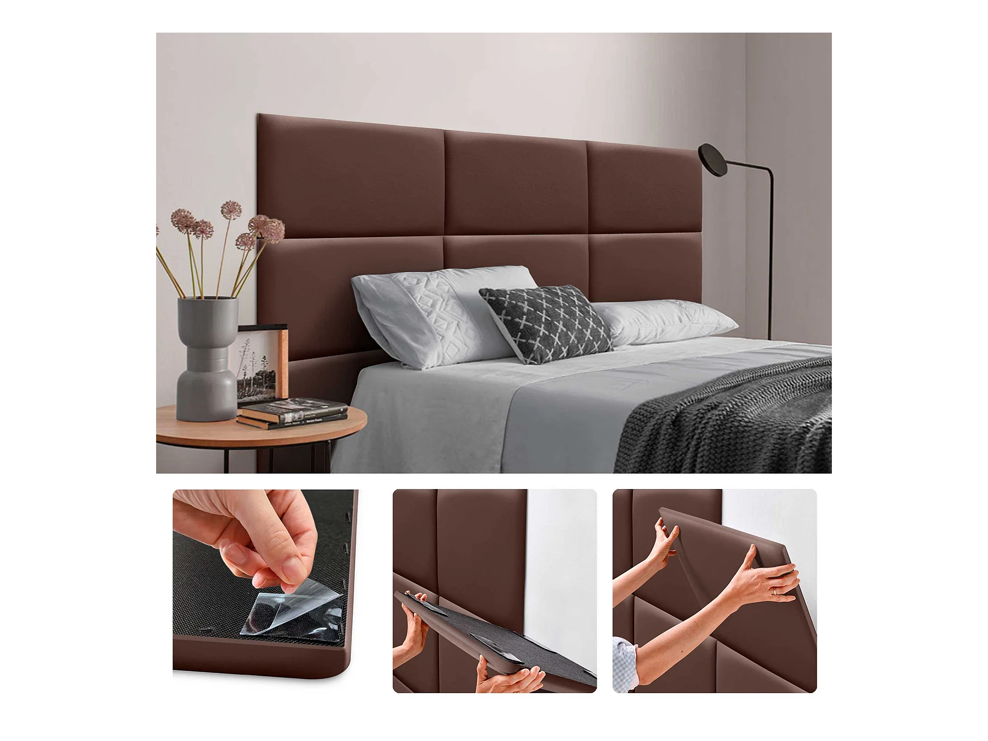 DHOME Tête de lit capitonnée en similicuir de qualité supérieure composée de panneaux autocollants interchangeables (chocolat, 105 cm)