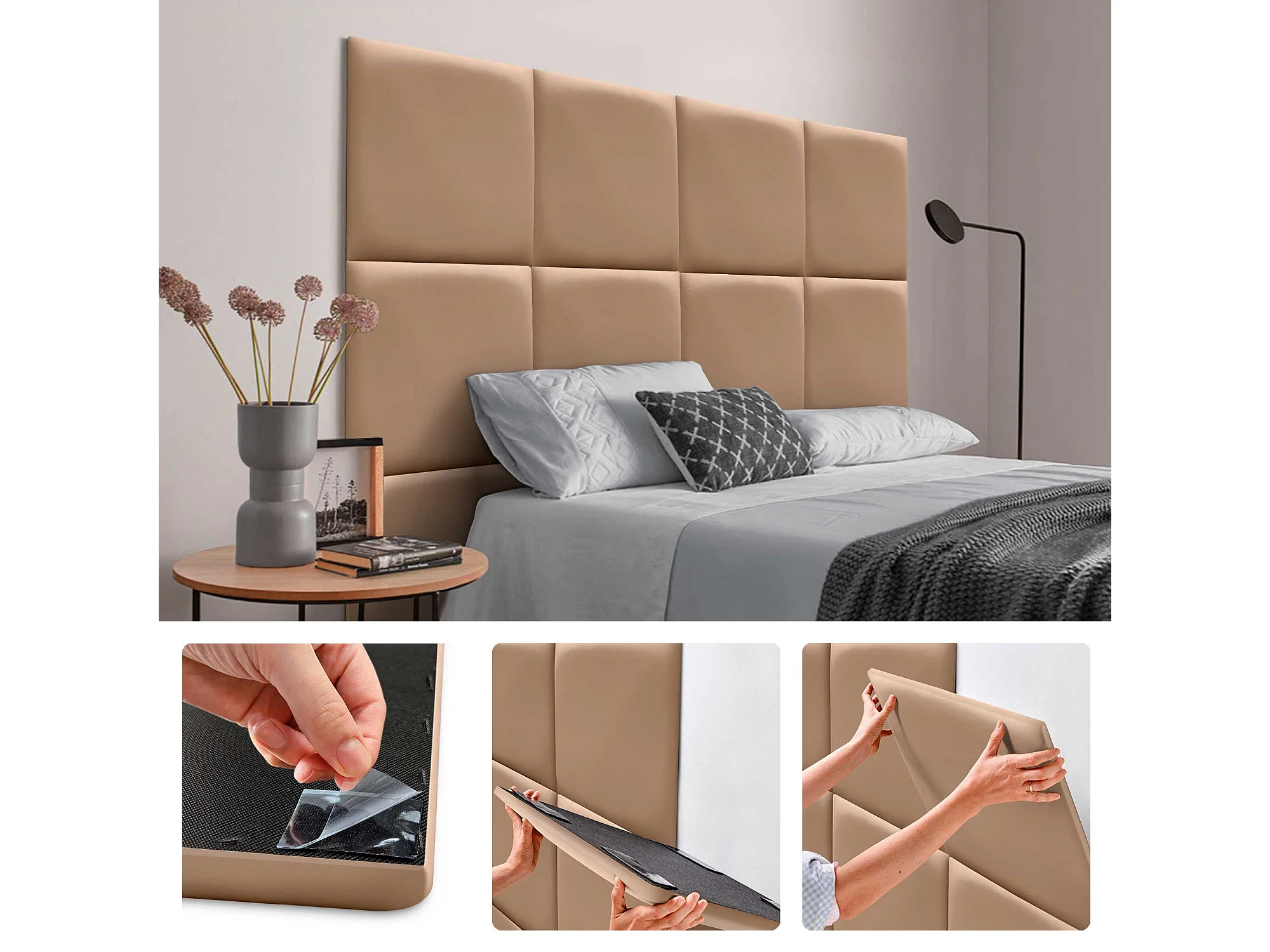 DHOME Panneaux Rembourrés en Similicuir Autocollants pour Mur Acoustiques Absorbants Protection contre les Chocs Têtes de Lit (marron clair, 60x60cm)