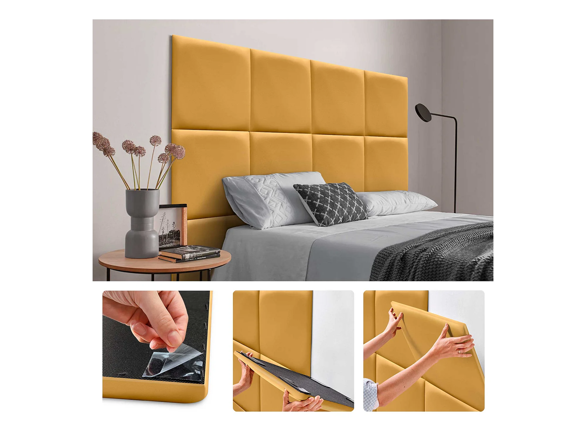 DHOME Panneaux Rembourrés en Similicuir Autocollants pour Mur Acoustiques Absorbants Protection contre les Chocs Têtes de Lit (moutarde, 50x30cm)