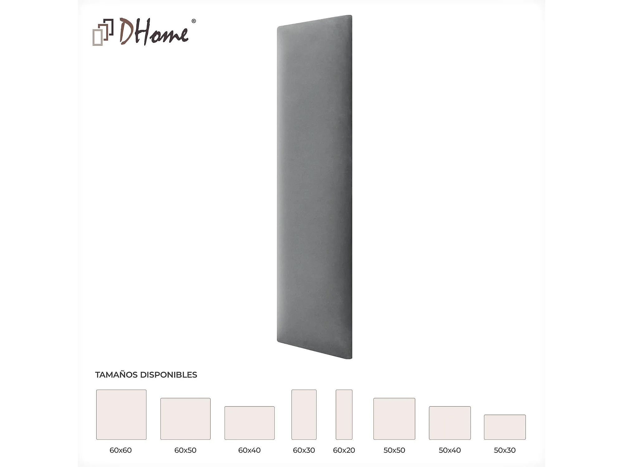 DHOME Panneaux Rembourrés en Velours Premium Autoadhésifs pour Mur Acoustique Absorbant Protection Contre les Chocs, Tete de lit (Gris Clair, 60x20cm)