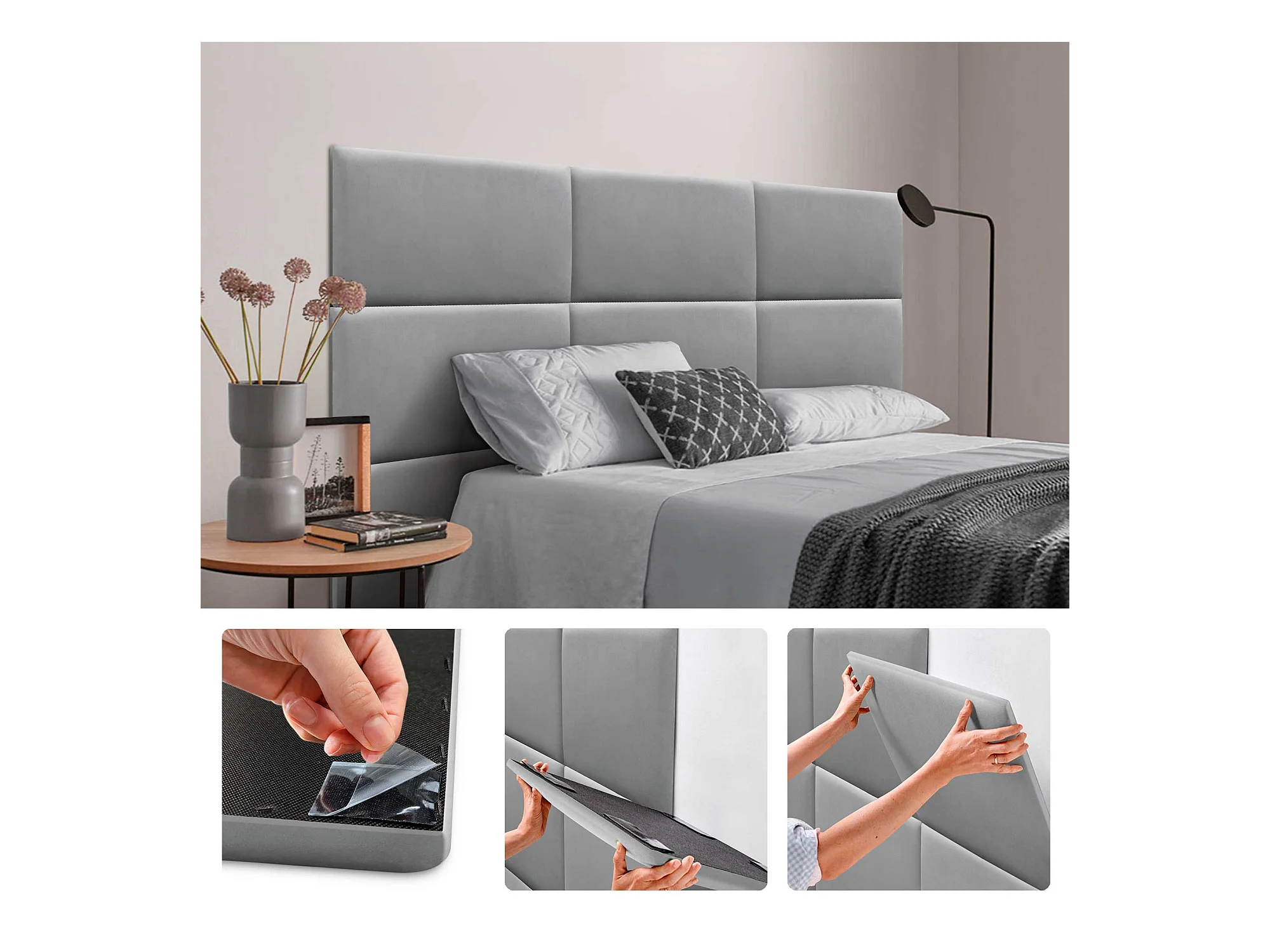 DHOME Panneaux Rembourrés en Velours Premium Autoadhésifs pour Mur Acoustique Absorbant Protection Contre les Chocs, Tete de lit (Gris Clair, 60x50cm)