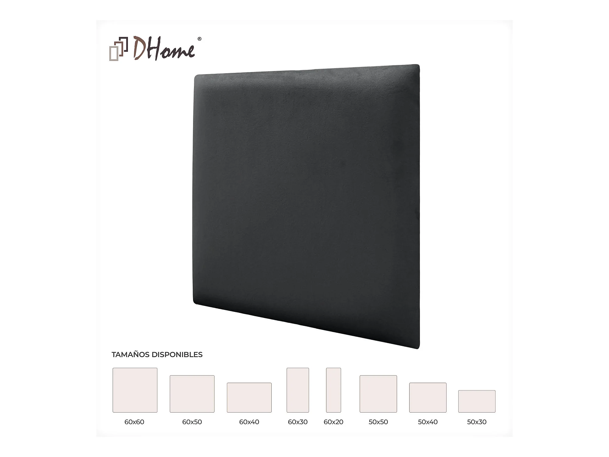 DHOME Panneaux Rembourrés en Velours Premium Autoadhésifs pour Mur Acoustique Absorbant Protection Contre les Chocs, Tete de lit (Gris Foncé, 50x40cm)