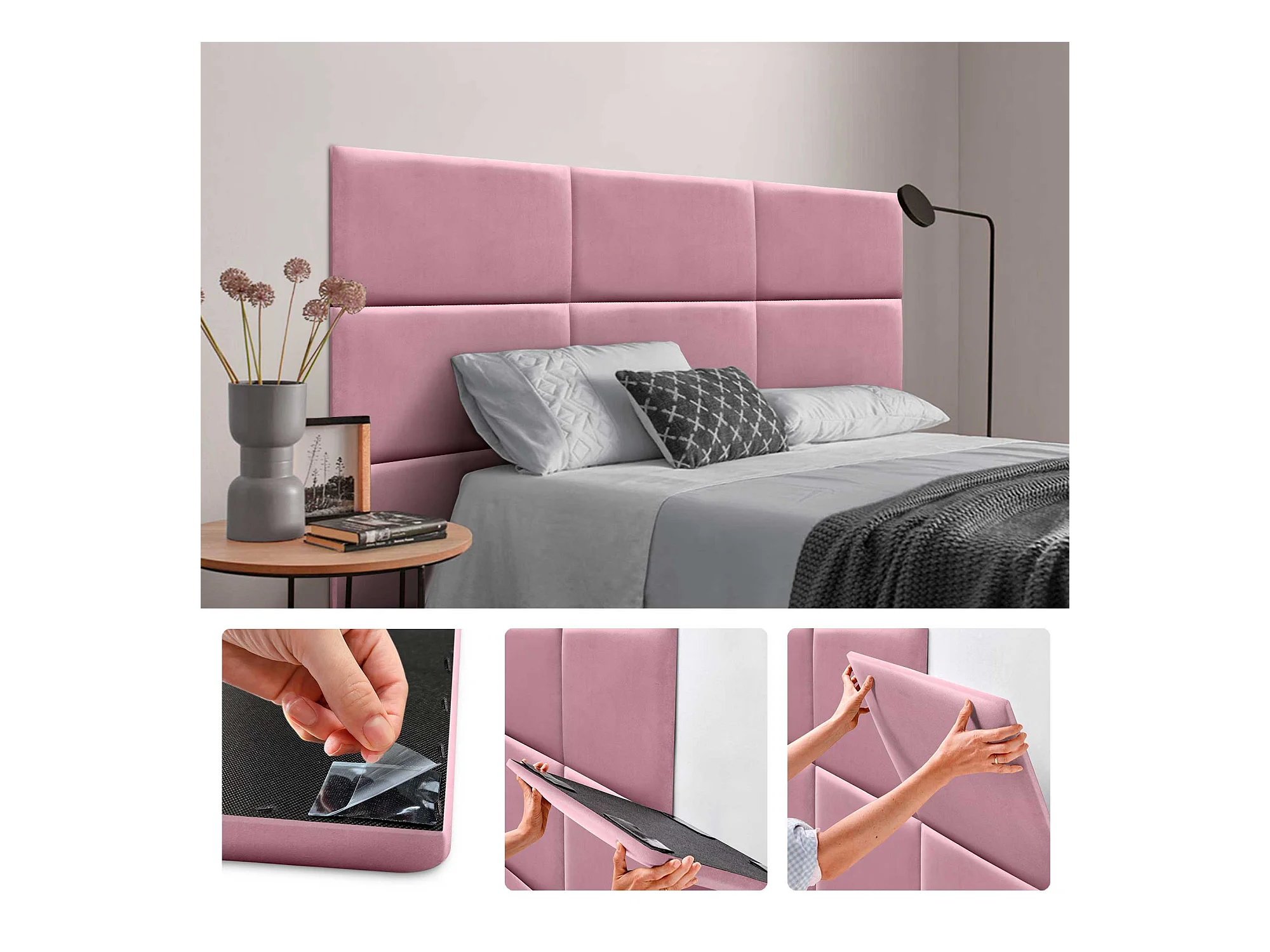 DHOME Panneaux Rembourrés en Velours Premium Autoadhésifs pour Mur Acoustique Absorbant Protection Contre les Chocs, Tete de lit (Rose, 50x30cm)