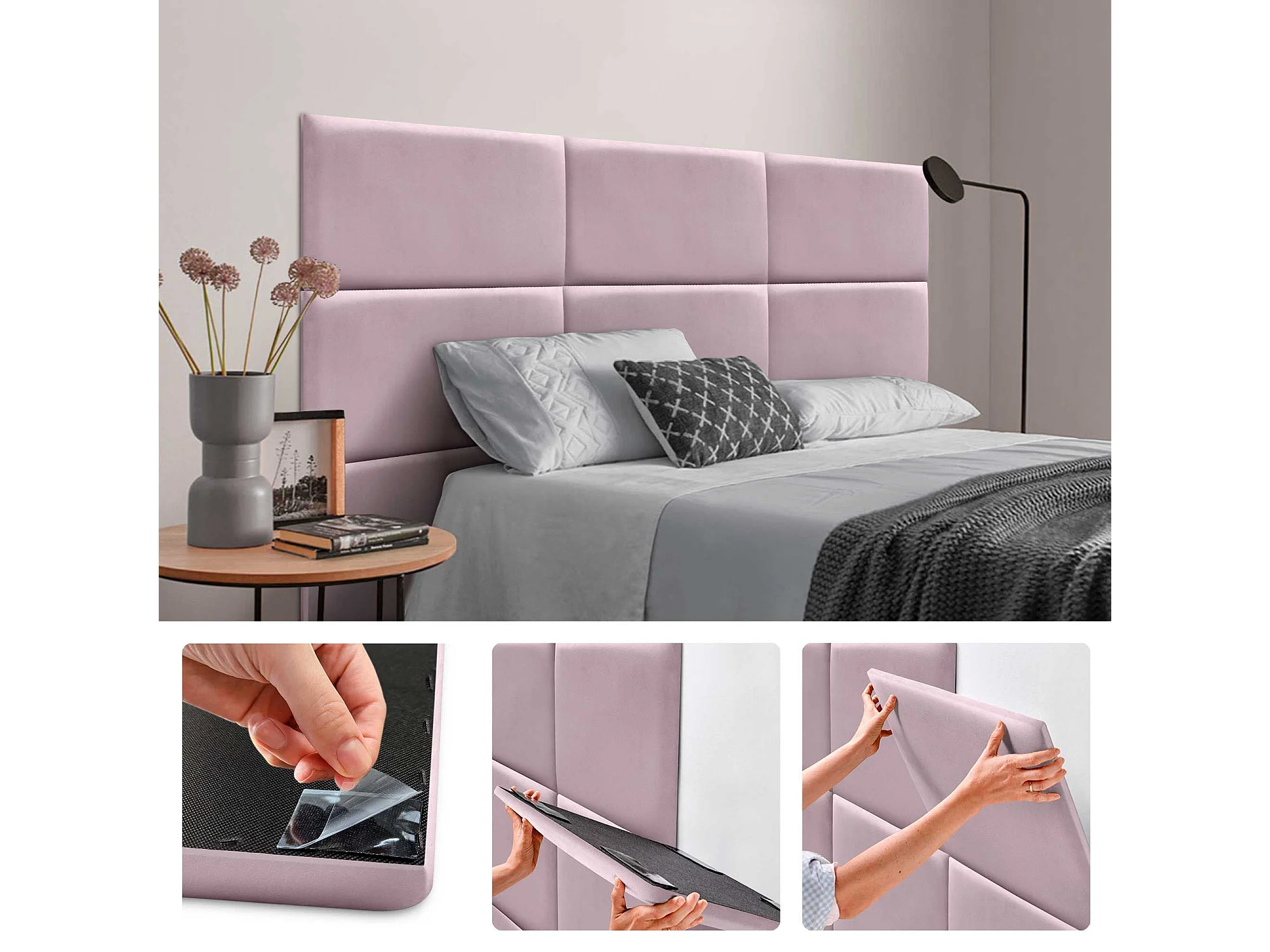 DHOME Panneaux Rembourrés en Velours Premium Autoadhésifs pour Mur Acoustique Absorbant Protection Contre les Chocs, Tete de lit (Saumon, 60x40cm)