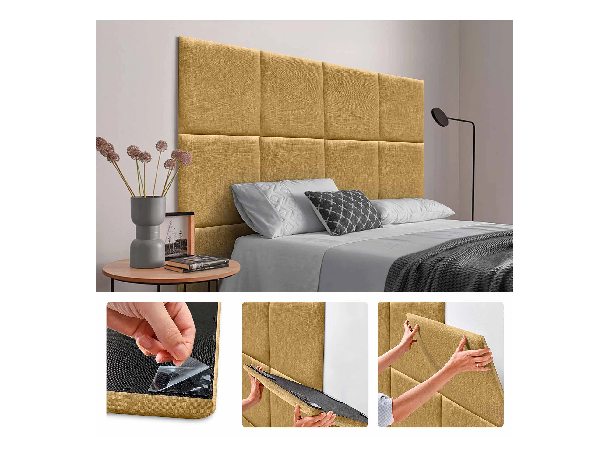DHOME Ensemble de 1 Panneau mural en lin autocollant, absorption acoustique, protection contre les chocs et têtes de lit (Moutarde, 50x50cm, x1)