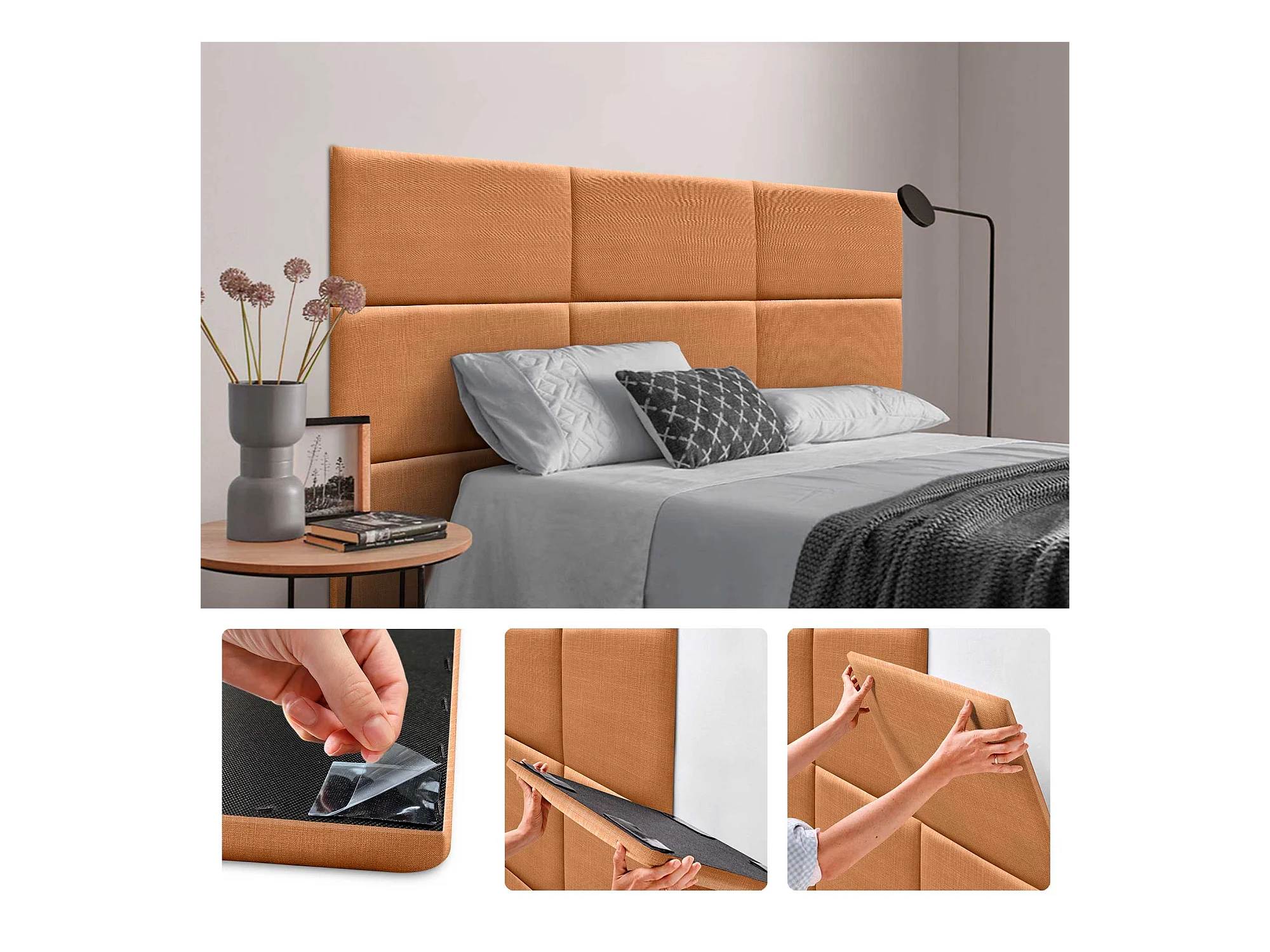 DHOME Tête de lit capitonnée en lin naturel composée de panneaux autocollants interchangeables pour chambre de luxe rembourrée (orange, 80 cm)