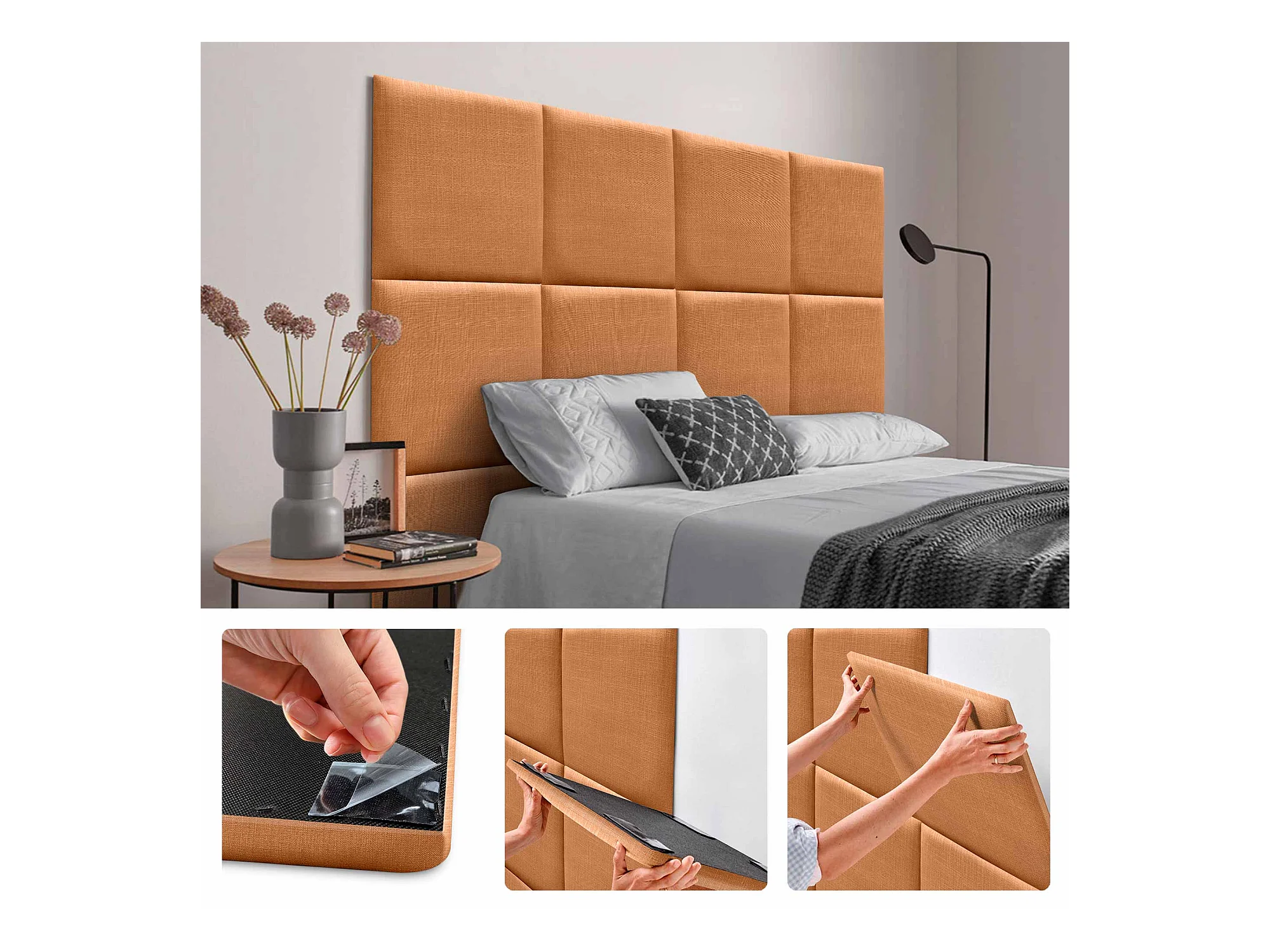 DHOME Tête de lit capitonnée en lin naturel composée de panneaux autocollants interchangeables pour chambre de luxe rembourrée (orange, 80 cm)