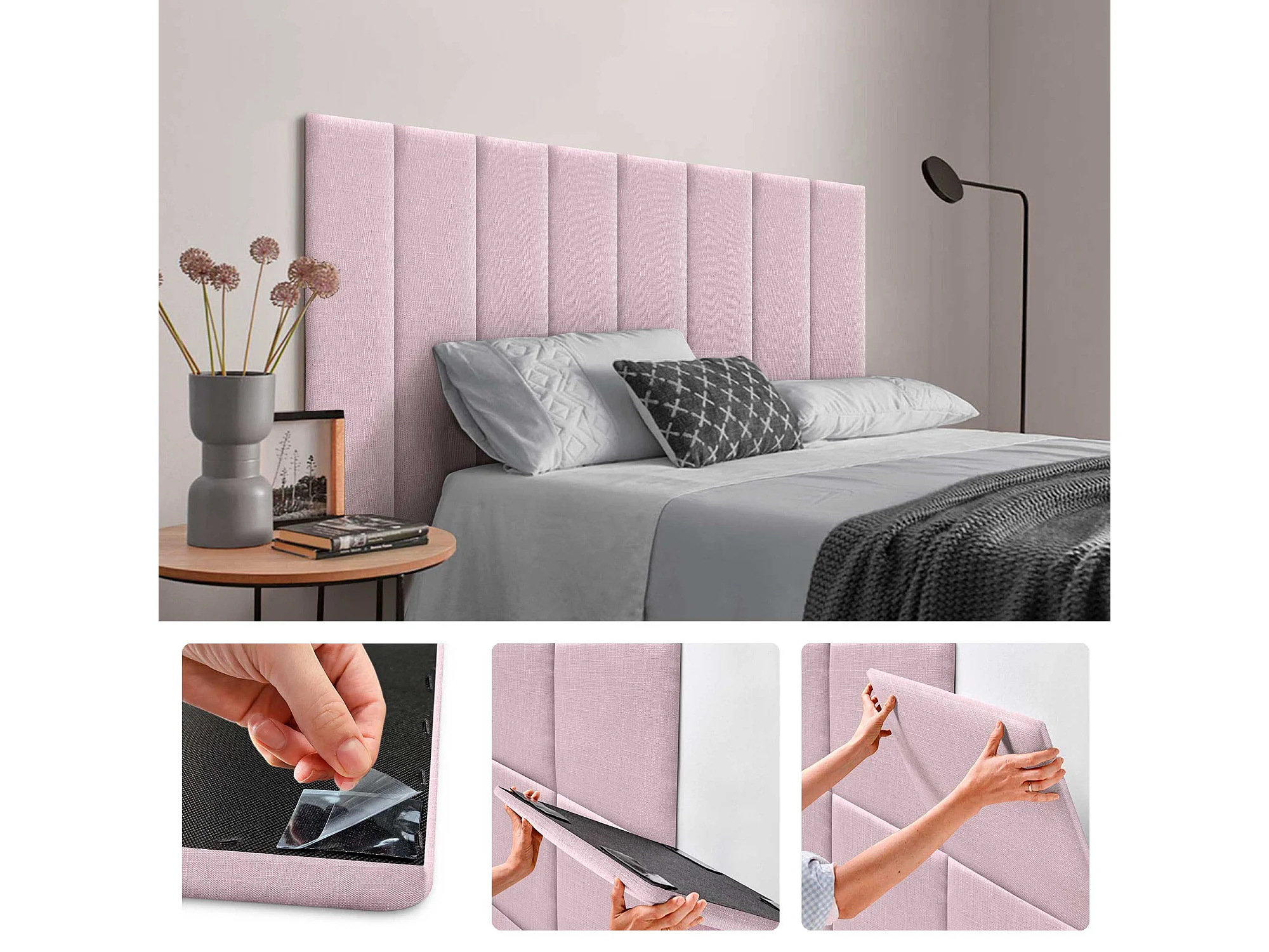 DHOME Tête de lit capitonnée en lin naturel composée de panneaux autocollants interchangeables pour chambre de luxe rembourrée (rose, 90 cm)
