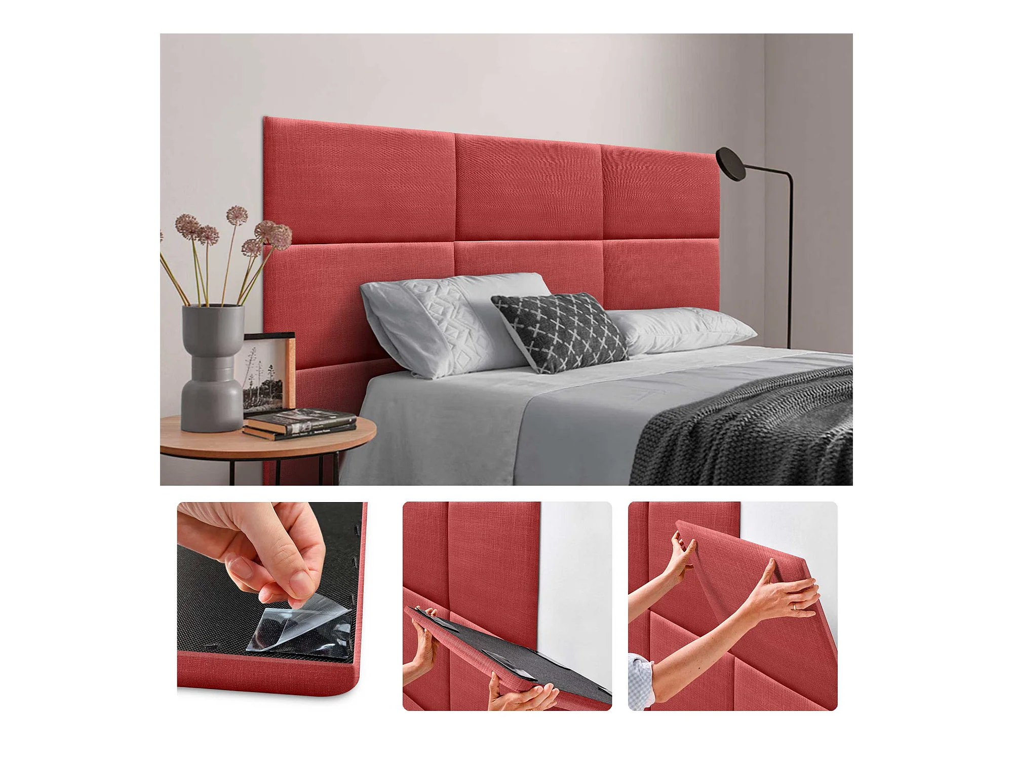 DHOME Tête de lit capitonnée en lin naturel composée de panneaux autocollants interchangeables pour chambre de luxe rembourrée (rouge, 145 cm)