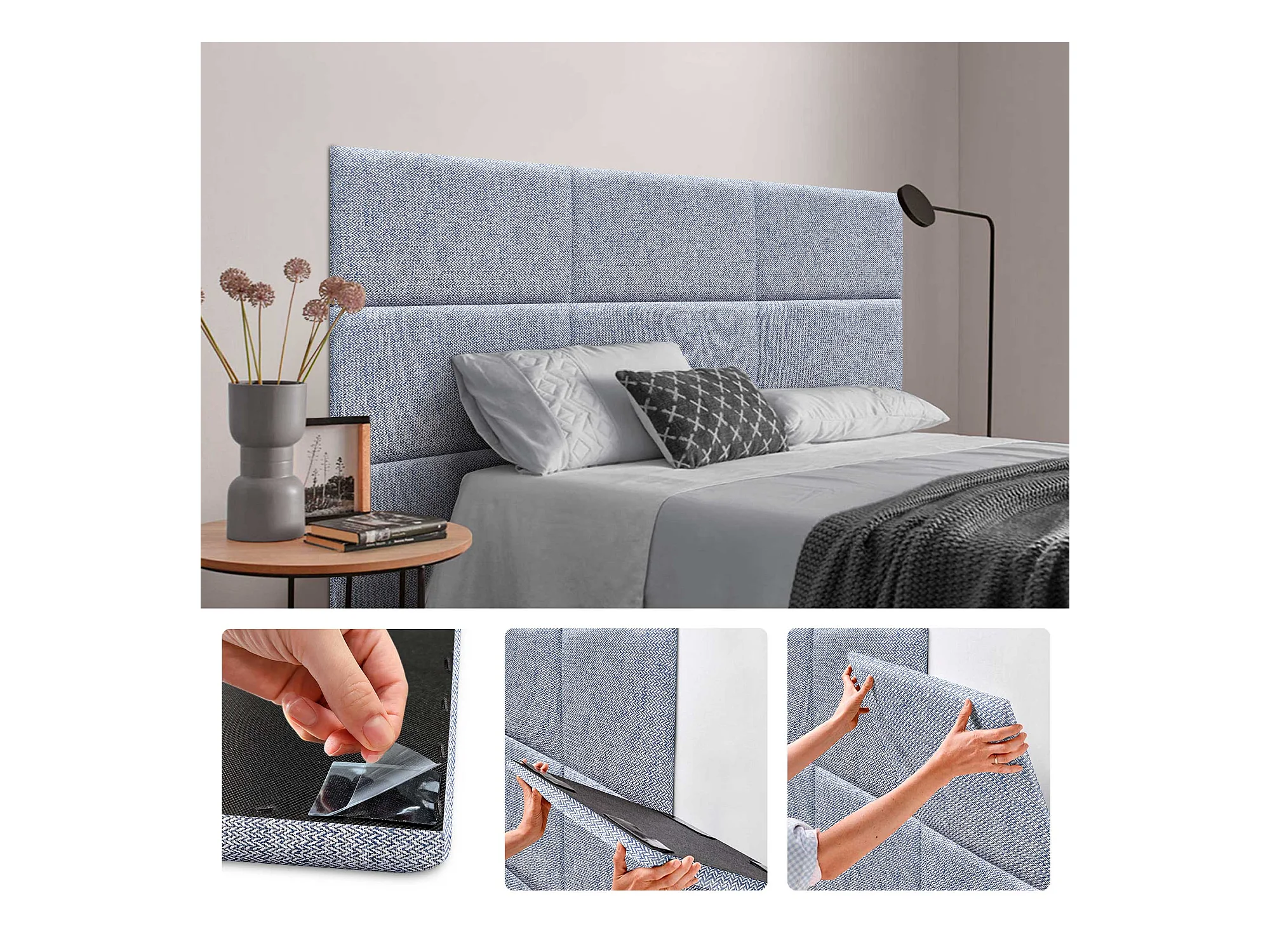 DHOME Ensemble de 8 Panneaux muraux en lin autocollants, absorption acoustique, protection contre les chocs et Têtes de Lit (Bleu, 50x40cm, x8)