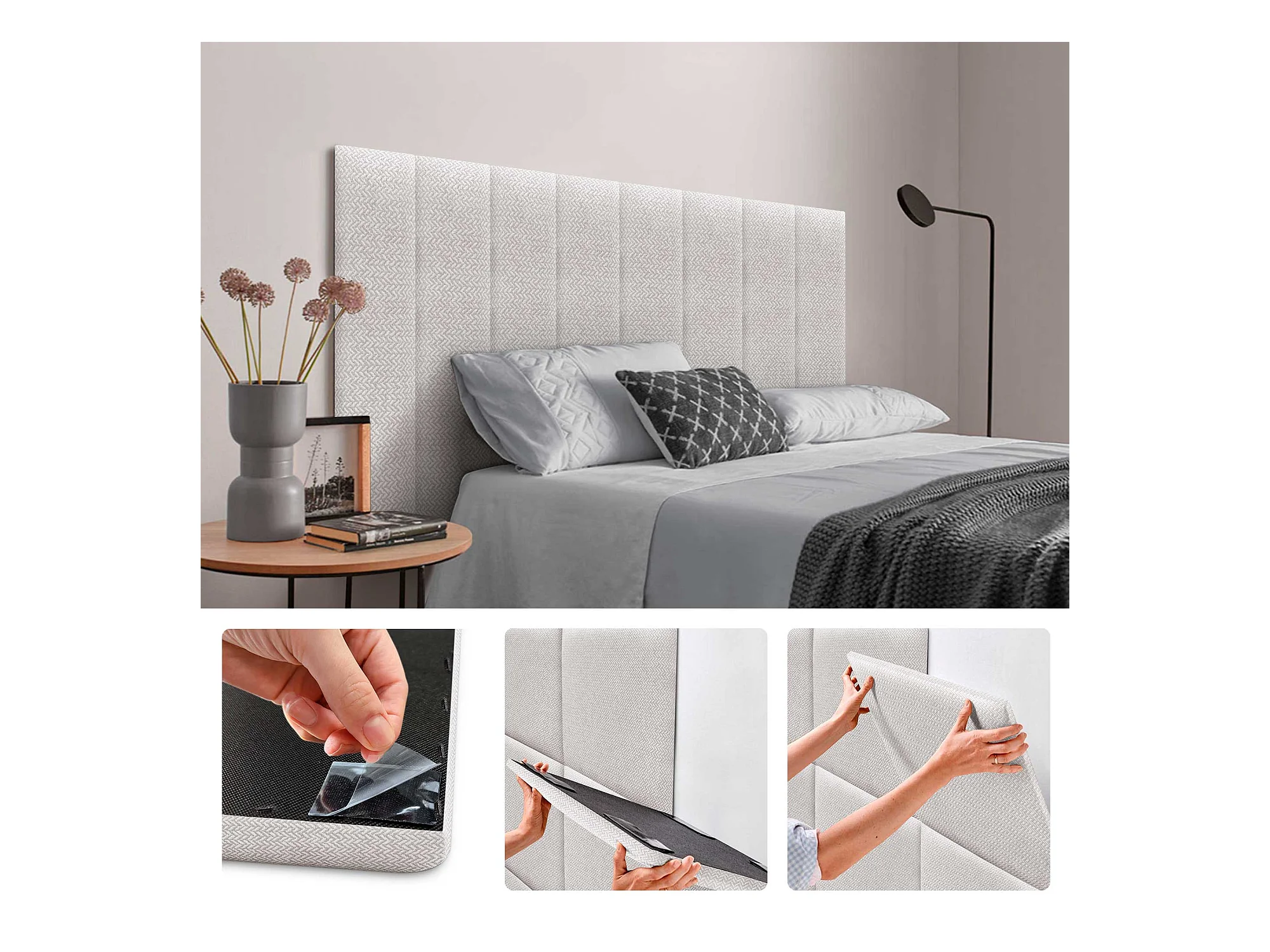 DHOME Ensemble de 8 Panneaux muraux en lin autocollants, absorption acoustique, protection contre les chocs et Têtes de Lit (Beige, 60x20cm, x8)