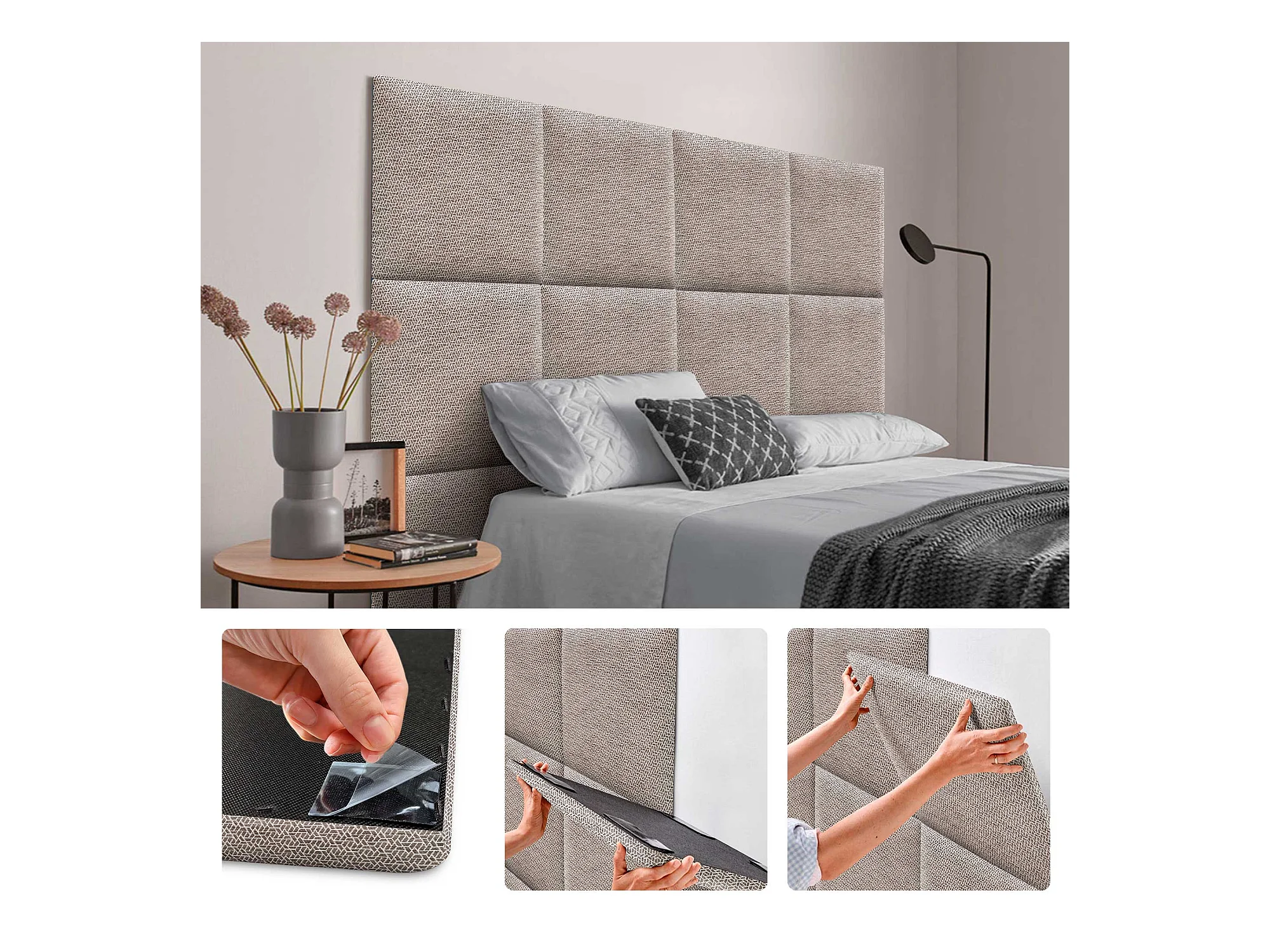 DHOME Panneaux Tapissés en Lin Autoadhésifs pour Mur Acoustiques Absorbants Protection Contre les Impacts Têtes de Lit Décoration (Terre, 60x60cm)