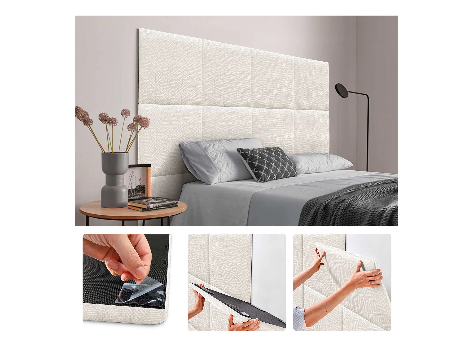 DHOME Tête de Lit Rembourrée Composée de Panneaux Autoadhésifs Interchangeables Série Luxury Edition Lit de Luxe Chambre (Ethnic White, 120cm)
