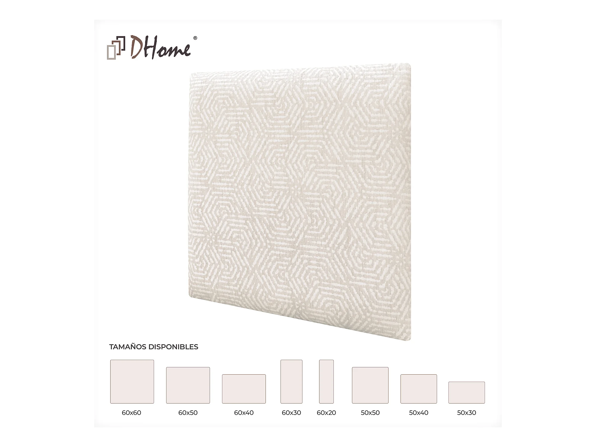 DHOME Ensemble de 1 Panneaux Tapissés en Tissu de Luxe Pack Autoadhésif pour Mur Acoustique Absorbant et Protecteur (Ethnic White, 50x30cm, x1)