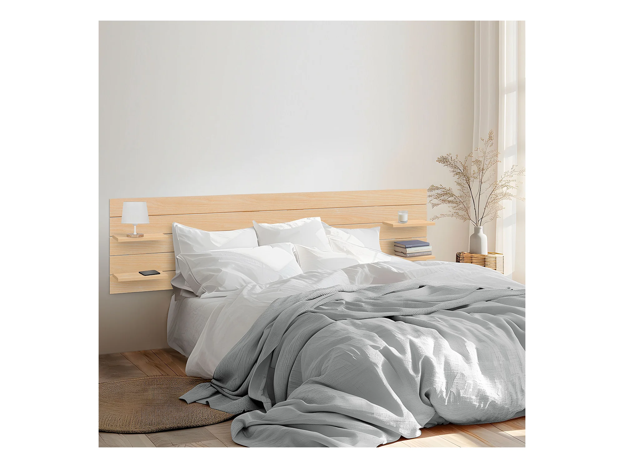 DHOME Tête de lit avec étagères en bois recyclé DM à suspendre au mur style palette japonaise avec pieds de lit nordique vintage (finition lin 270 cm)
