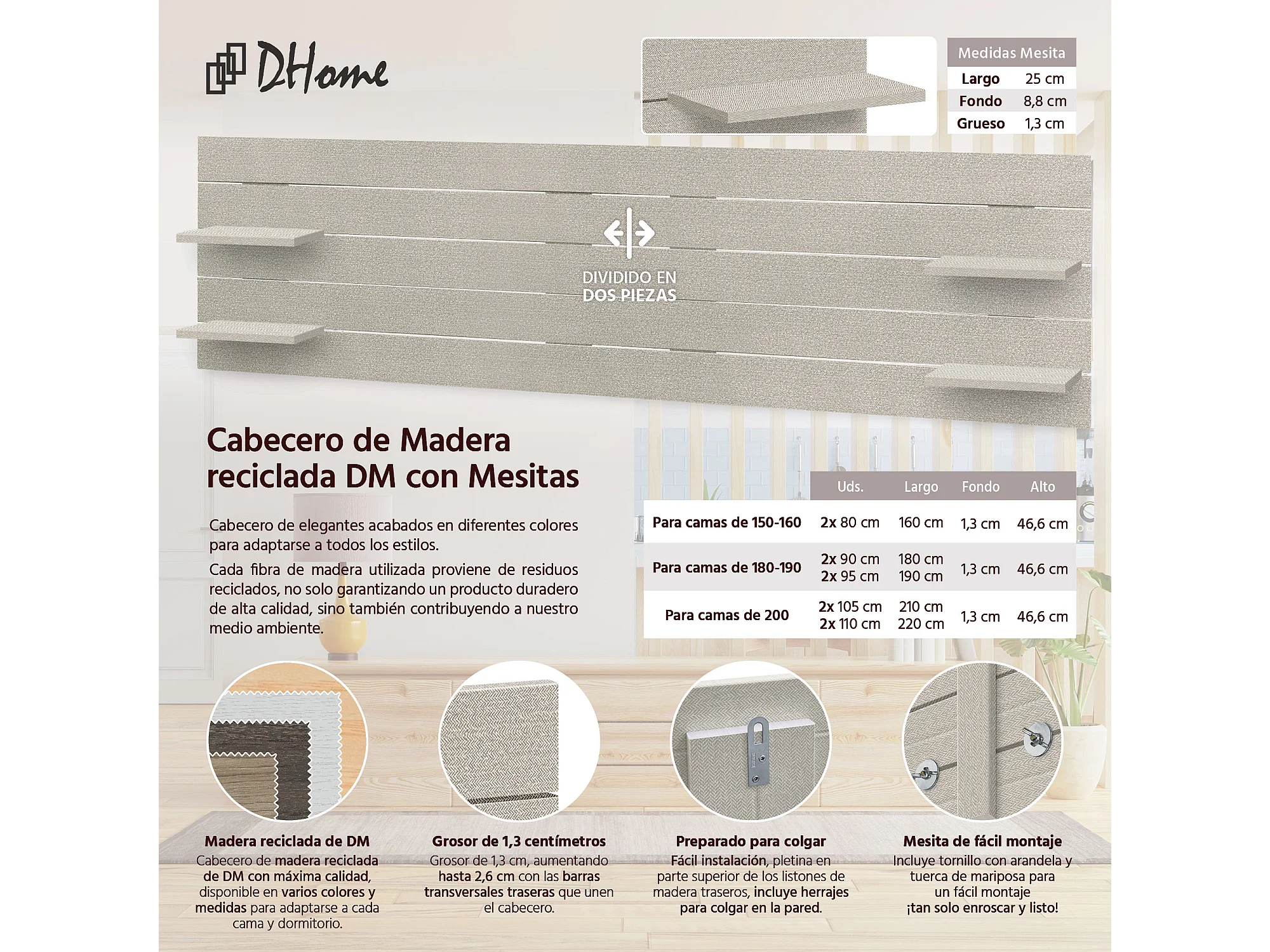 DHOME Tête de lit avec étagères en bois recyclé DM à suspendre au mur style palette japonaise avec pieds de lit nordique vintage (pointes beiges 290 cm)