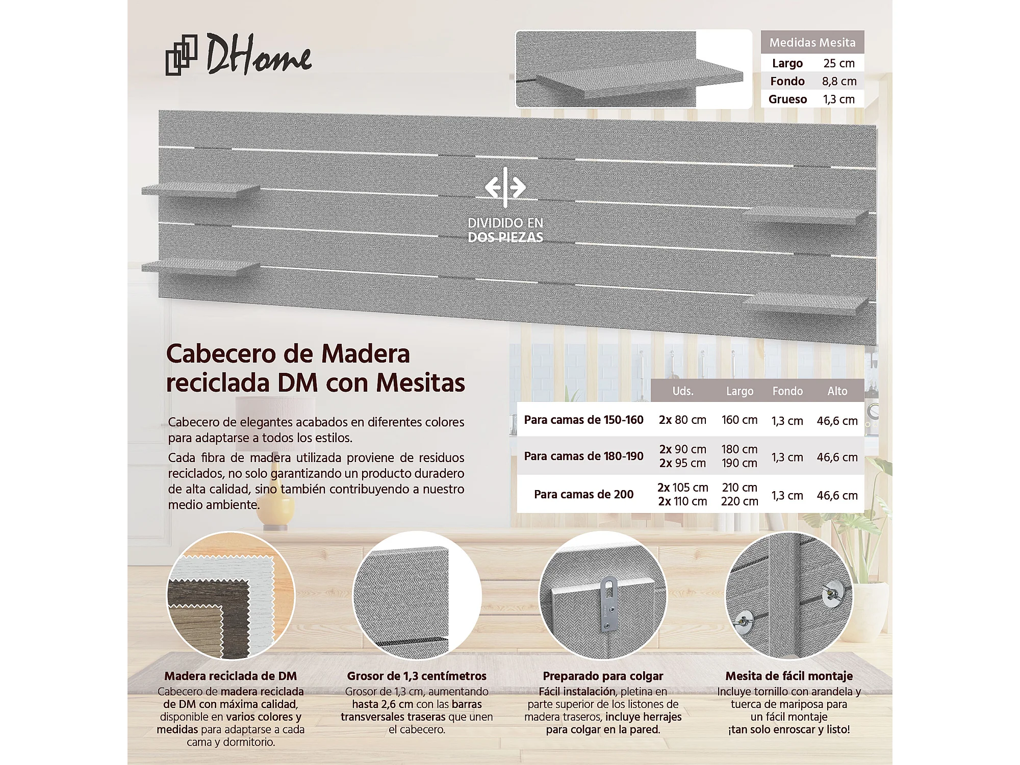 DHOME Tête de lit avec étagères en bois recyclé DM à suspendre au mur style palette japonaise avec pieds de lit nordique vintage (pointes grises 220 cm)