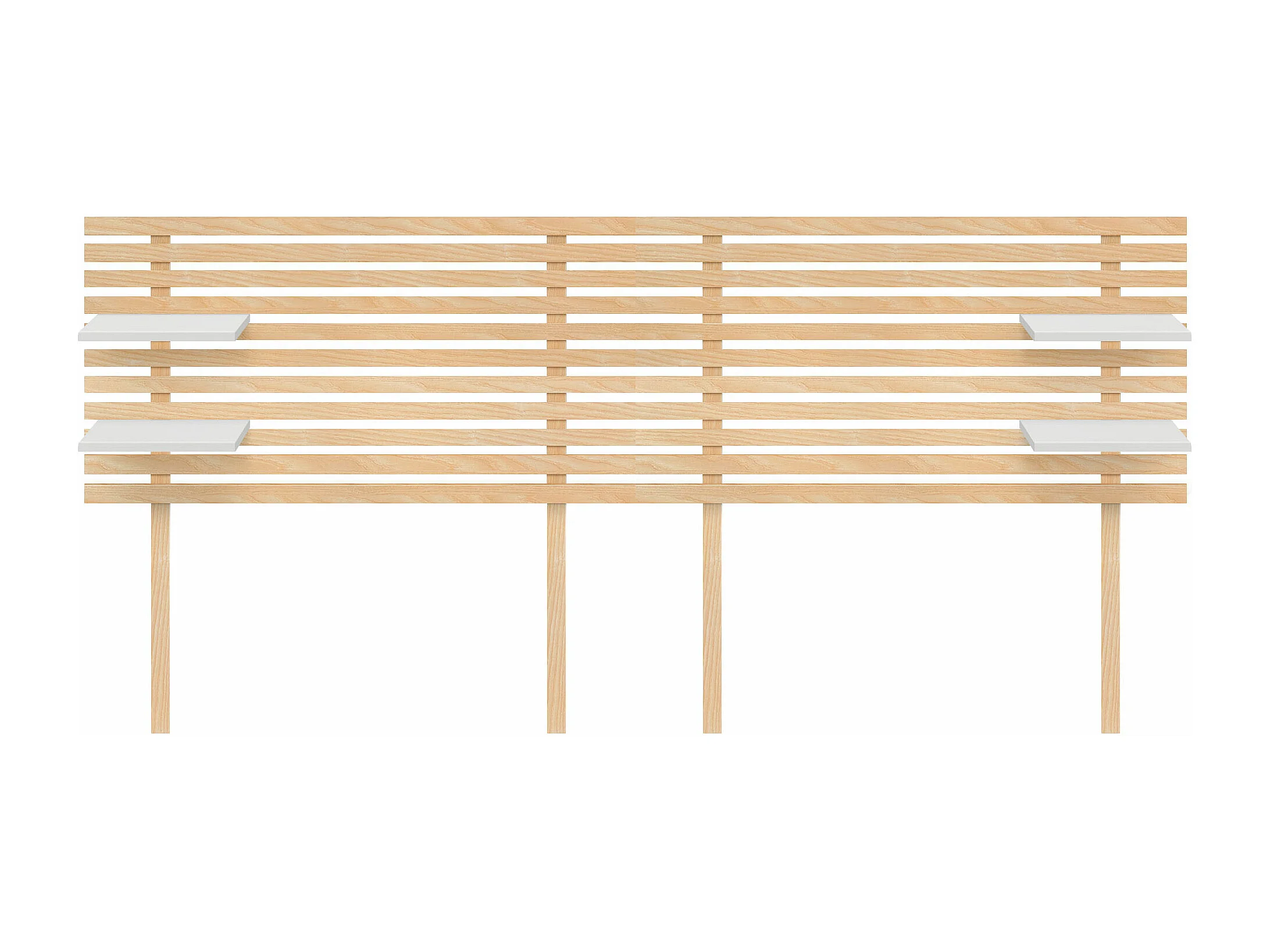 DHOME Tête de lit avec étagères en bois recyclé DM suspendue au mur de style palette japonaise avec pieds Lit (bois naturel/blanc, 270 cm double)