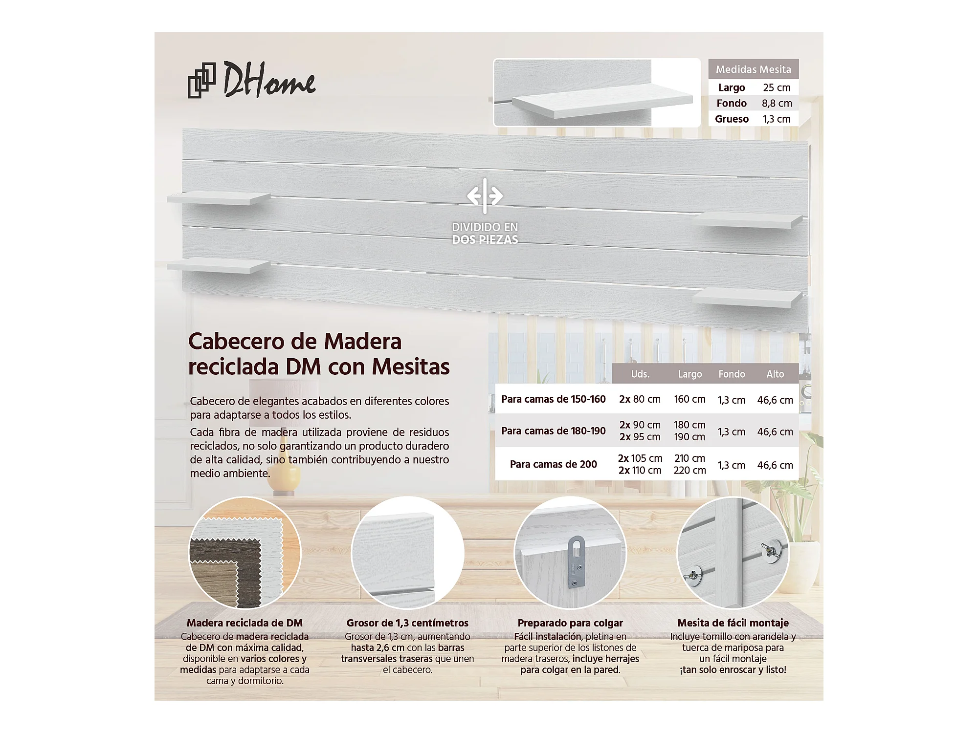 2. DHOME Tête de Lit DM Bois Recyclé Double Style Palette Japonaise Divisée en 2 Pièces 220x46cm Lits 220 - Bois Blanc