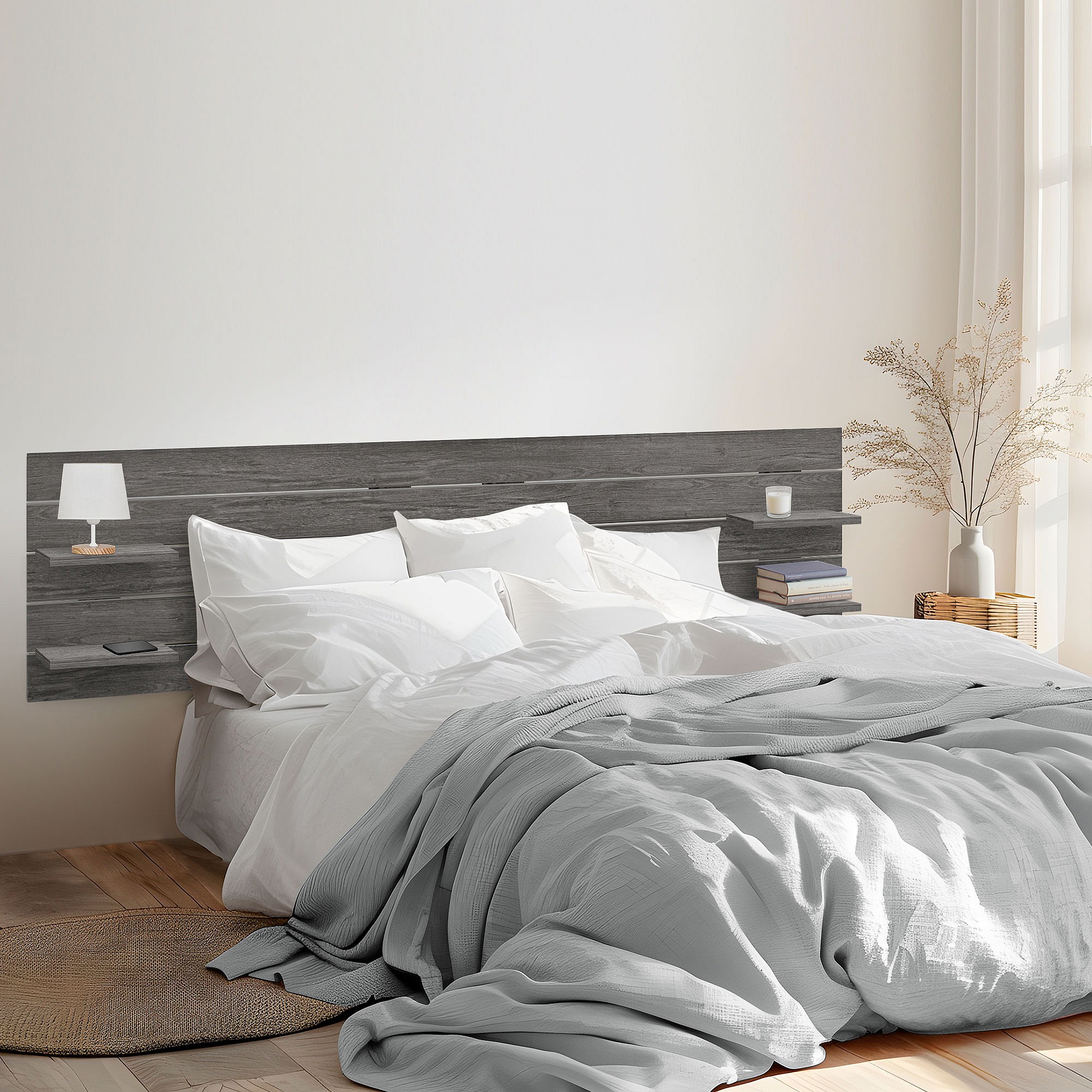 DHOME Tête de lit avec étagères en bois recyclé DM à suspendre au mur style palette japonaise avec pieds de lit nordique vintage (gris massif 290 cm)