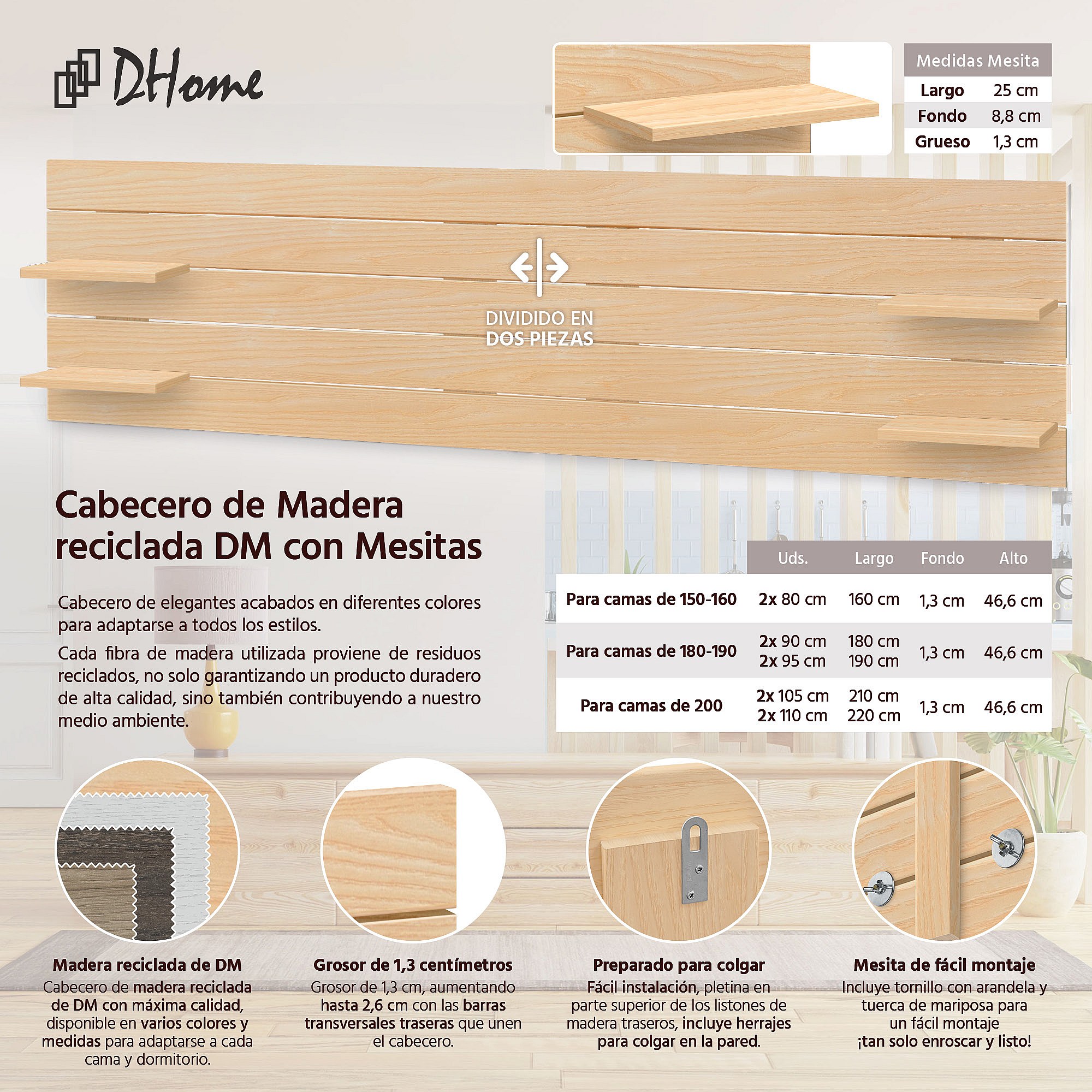 DHOME Tête de lit avec étagères en bois recyclé DM Tenture murale horizontale Style palette Lit nordique vintage (bois naturel 290 cm)
