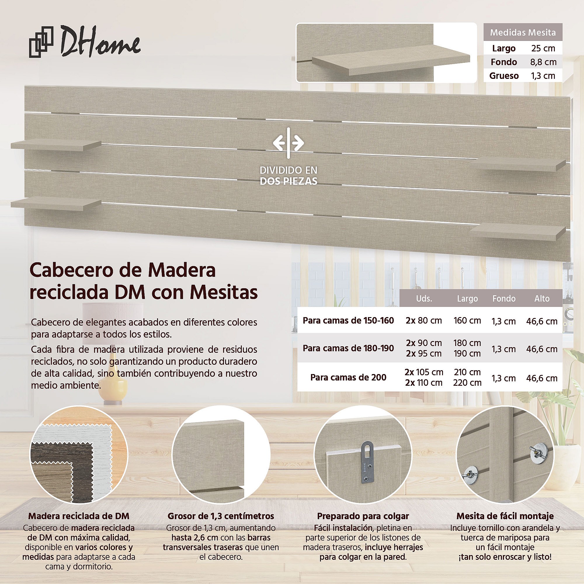 DHOME Tête de Lit en Bois DM Recyclé Double Style Palette Horizontale 220x46cm Lits 220 - Finition Lin