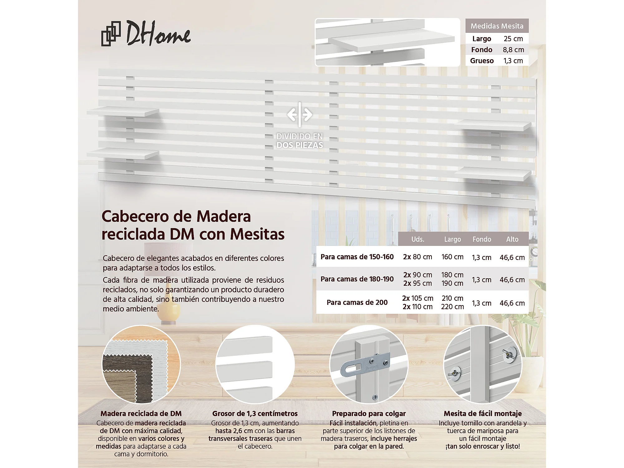 2. DHOME Tête de Lit DM Bois Recyclé Double Style Palette Japonaise Divisée en 2 Pièces 210x46cm Lits 220 - Bois Blanc