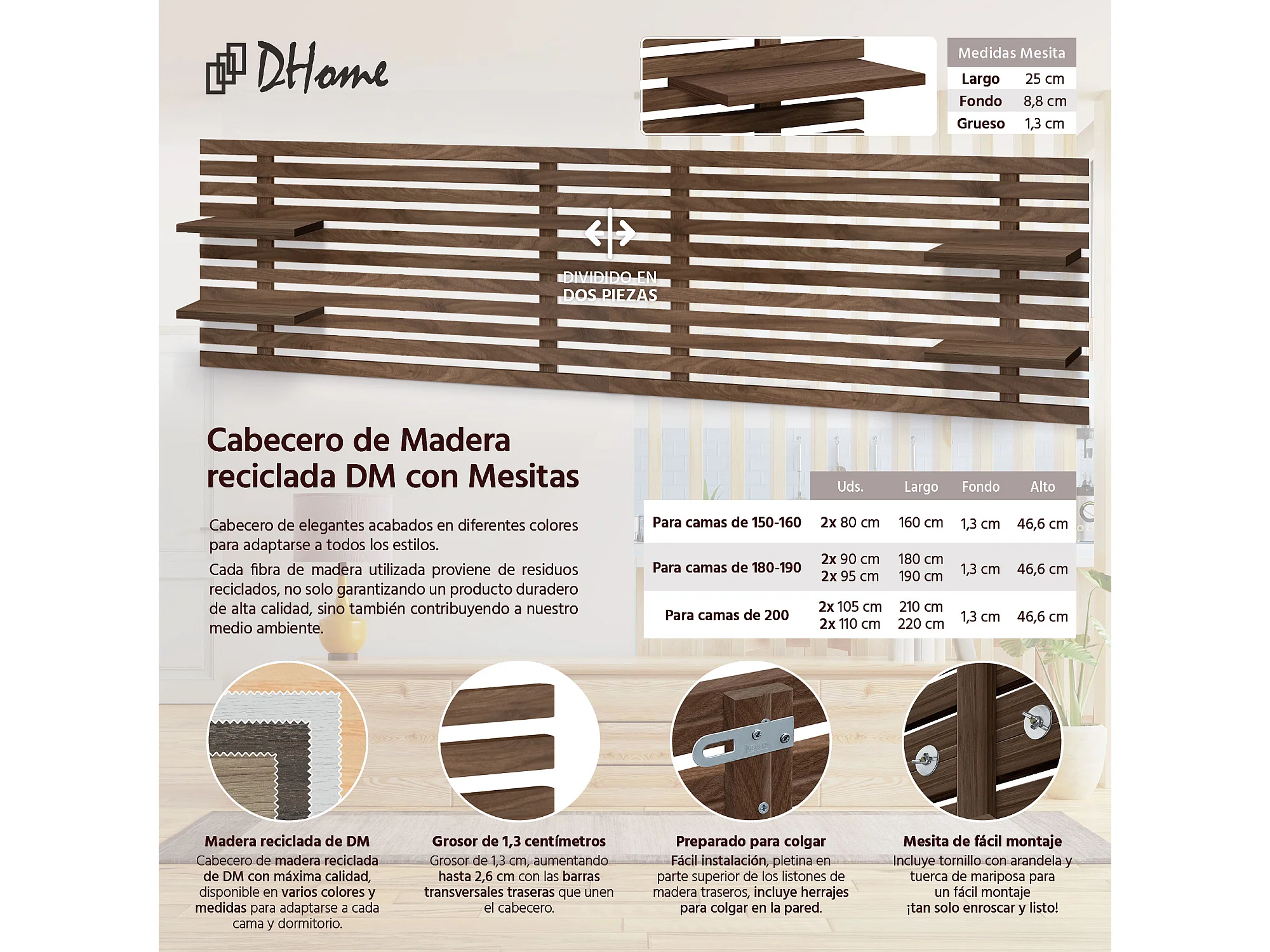 DHOME Tête de lit avec étagères en bois recyclé DM Tenture murale Style palette japonaise Lit nordique vintage (bois de noyer 270 cm)