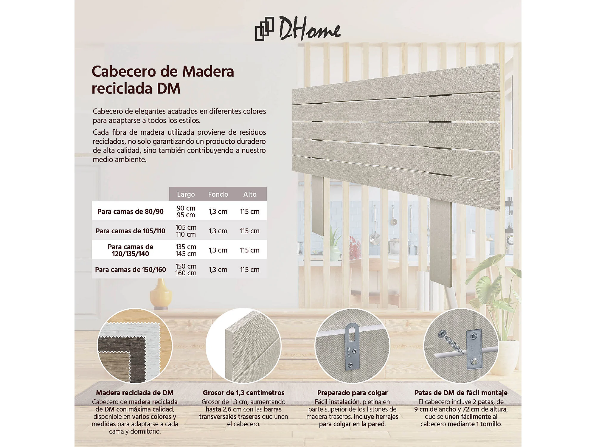 DHOME Tête de Lit Bois Recyclé Dm Style Palette Horizontale avec Pieds 80x115cm Lits 80 - Pointes Beige