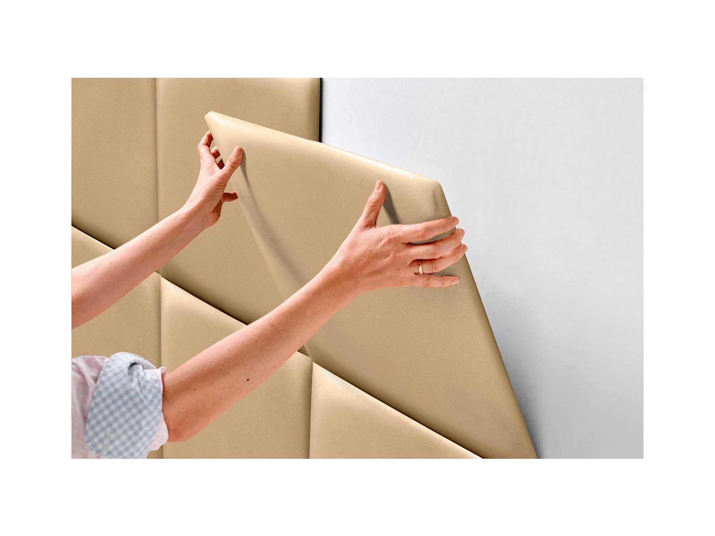 DHOME Tête de lit capitonnée en similicuir de qualité supérieure composée de panneaux autocollants interchangeables (Champagne, 105 cm)