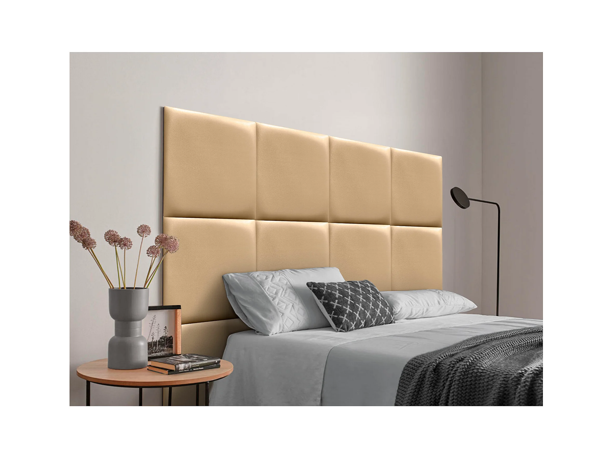 DHOME Tête de lit capitonnée en similicuir de qualité supérieure composée de panneaux autocollants interchangeables (Champagne, 120 cm)