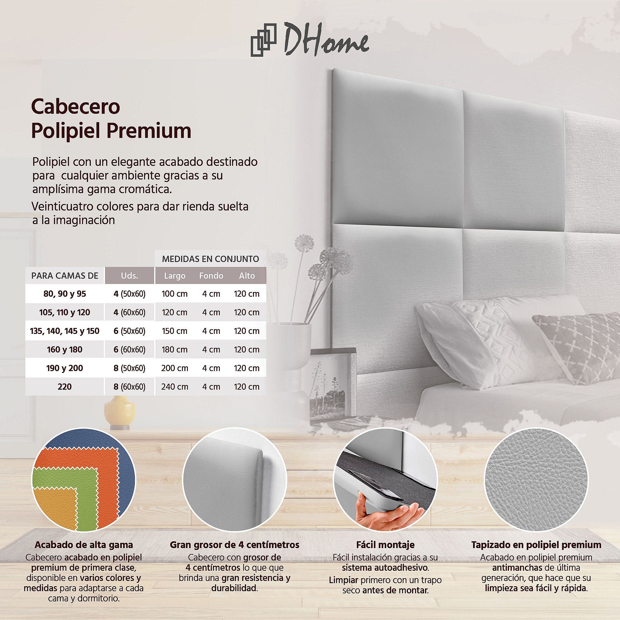 DHOME Tête de lit capitonnée en similicuir de qualité supérieure composée de panneaux autocollants interchangeables (gris clair, 190 cm)