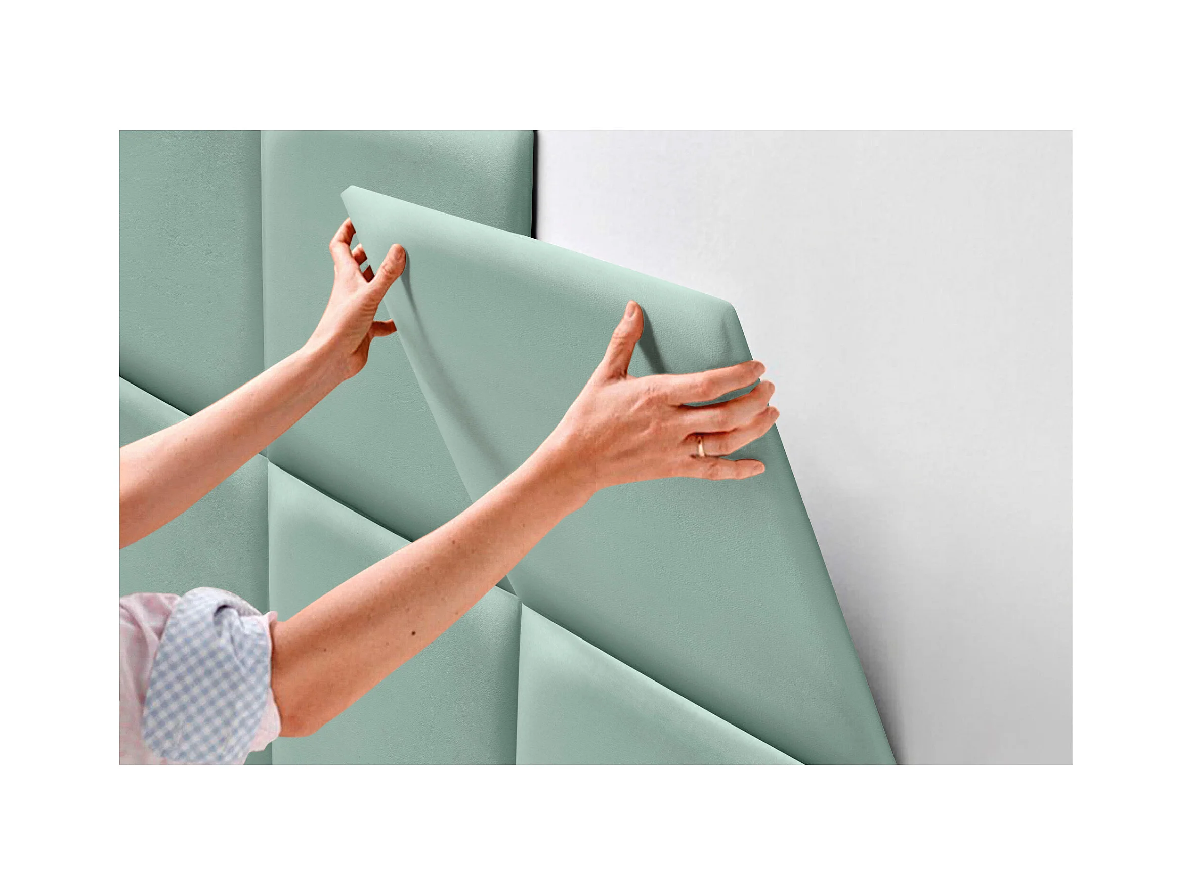 DHOME Panneaux Rembourrés en Similicuir Autocollants pour Mur Acoustiques Absorbants Protection contre les Chocs Têtes de Lit (vert d'eau, 50x30cm)