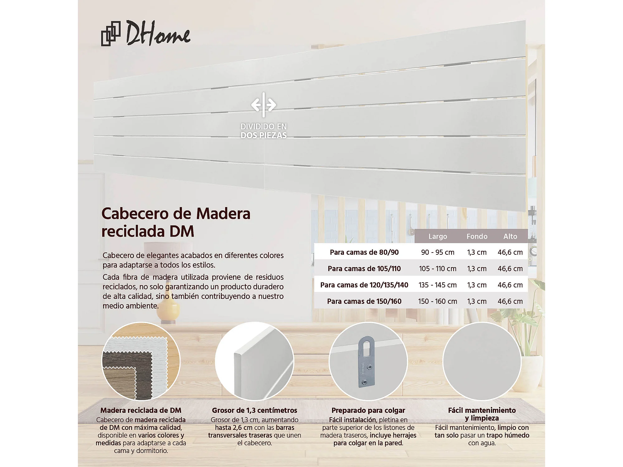DHOME Tête de Lit en Bois DM Recyclé Double Style Palette Horizontale 210x46cm Lits 220 - Blanc Massif