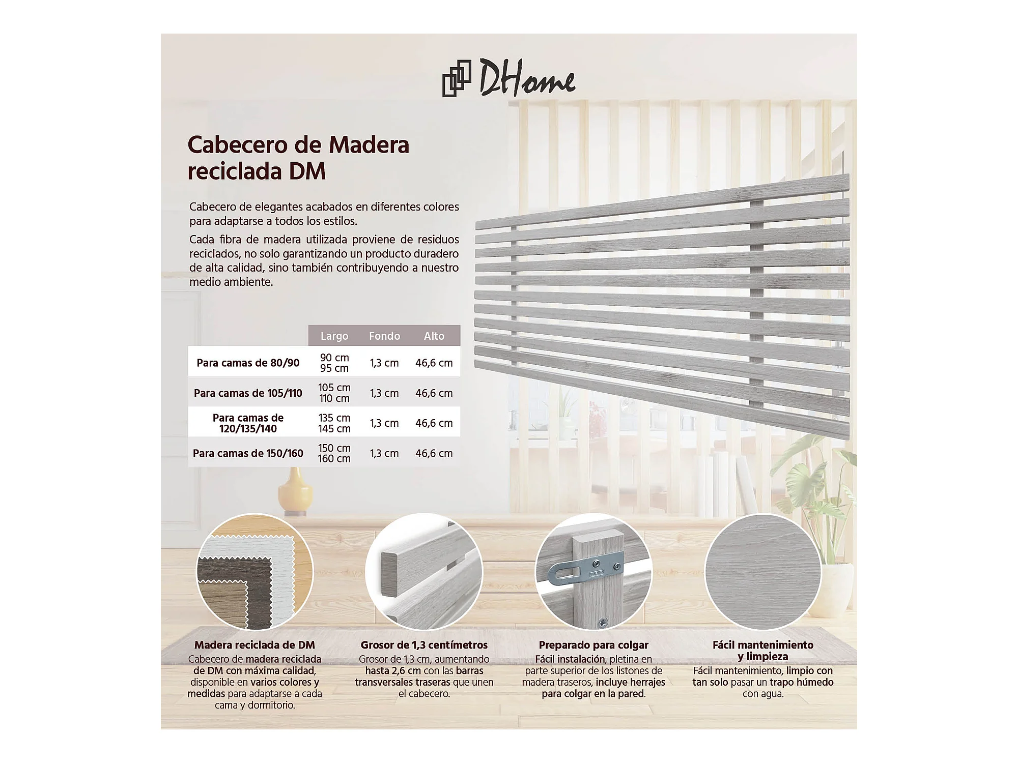 DHOME Tête de Lit Bois Recyclé Dm Style Palette Horizontale 90x46cm Lits 80/90 - Finition Lin
