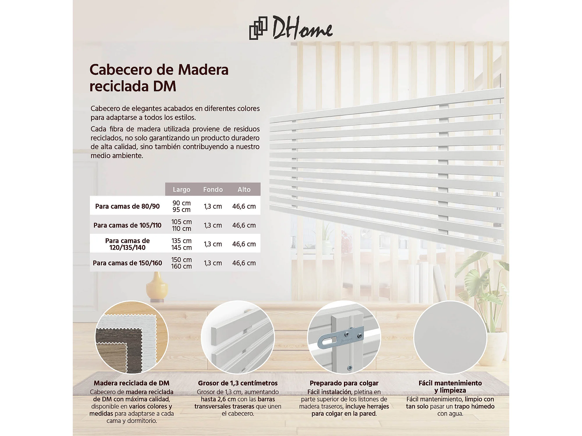 DHOME Tête de lit avec étagères en bois recyclé DM Tenture murale horizontale Style palette Lit nordique vintage (pointes grises 135 cm)