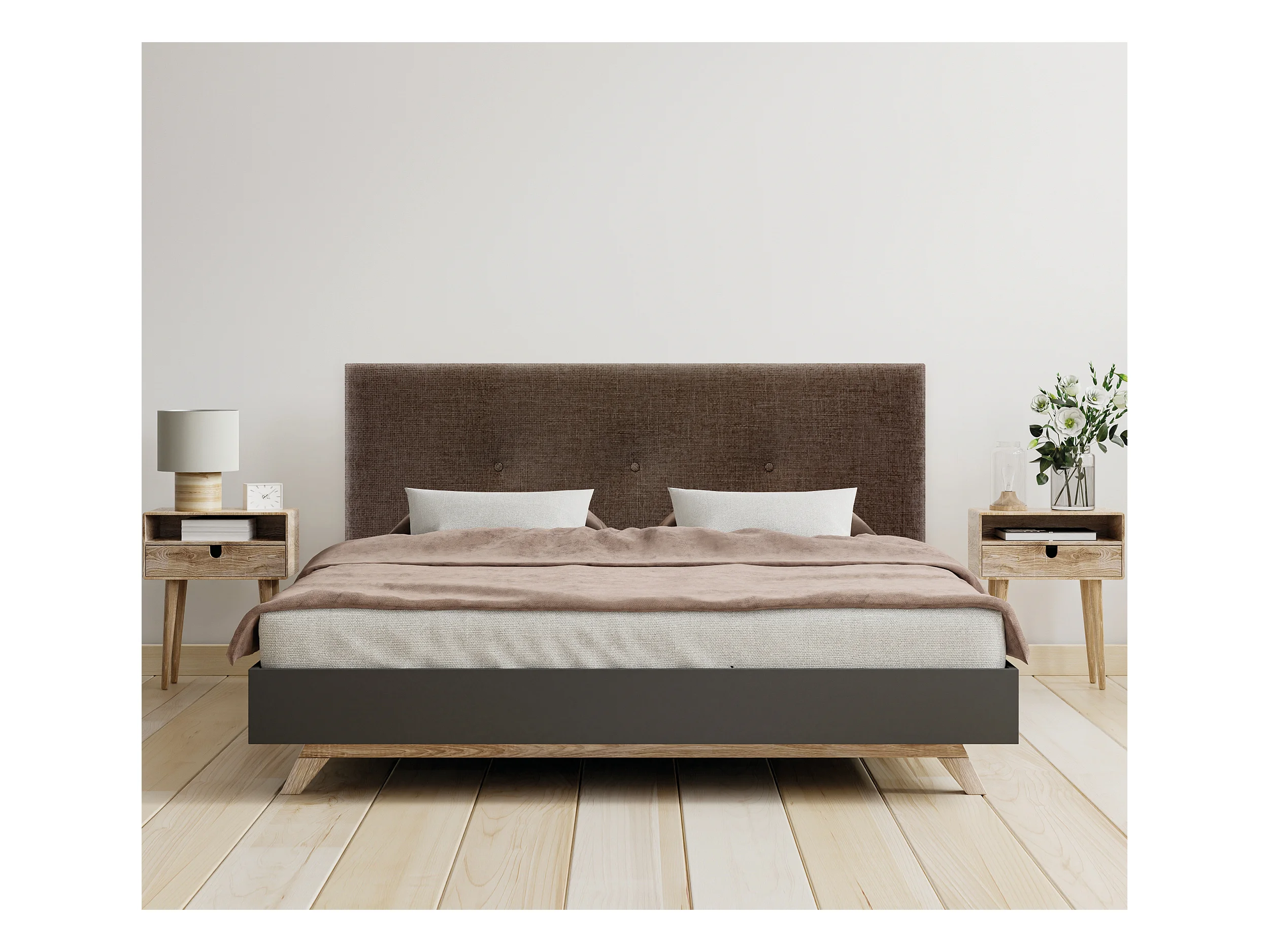 DHOME Tête de lit en laine naturelle avec Boutons 145x105cm avec pieds Lits 135/140 - Marron