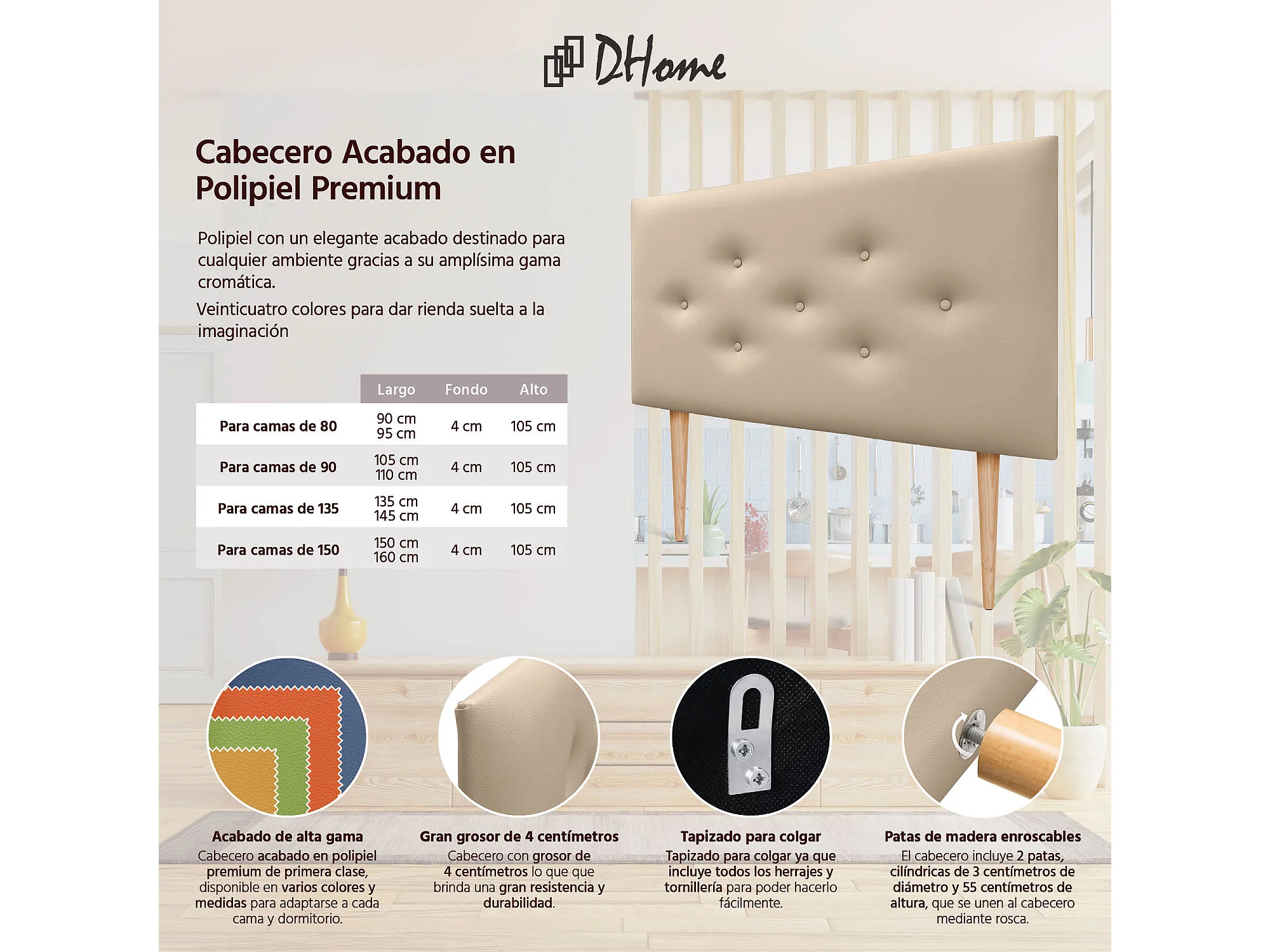 DHOME Tête de lit en simili cuir avec 3 rangées de boutons entrelacés Tête de lit rembourrée pour lit de luxe (Beige, 90cm)