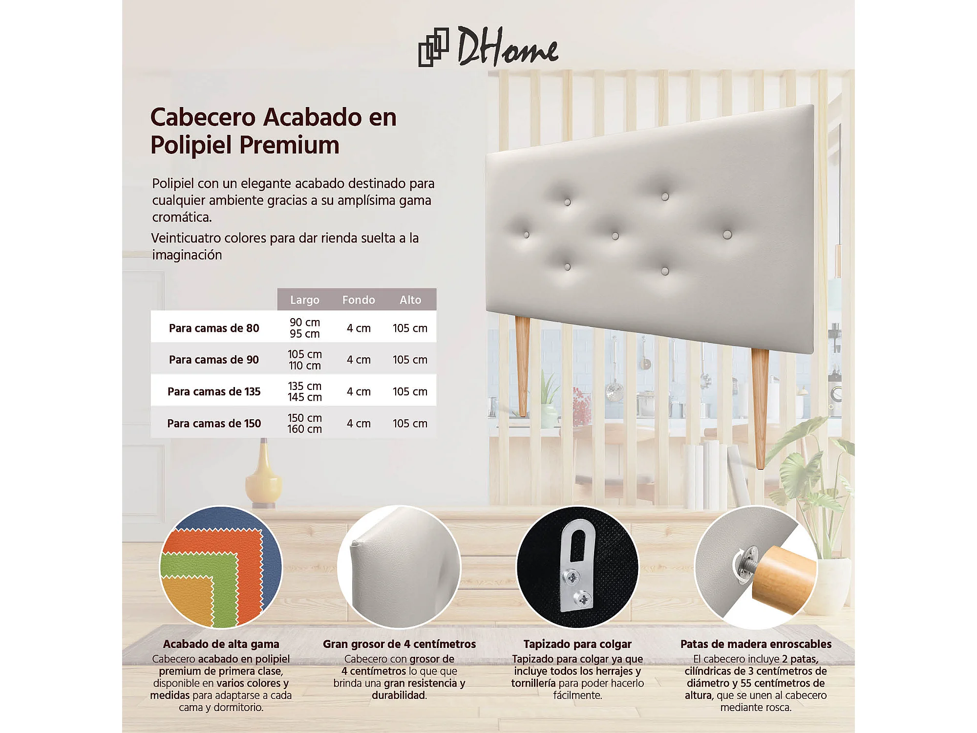 DHOME Tête de Lit en Similicuir avec 3 Rangées de Boutons Entrelacées Tête de Lit Rembourrée de Luxe (Blanc Hueso, 90cm)