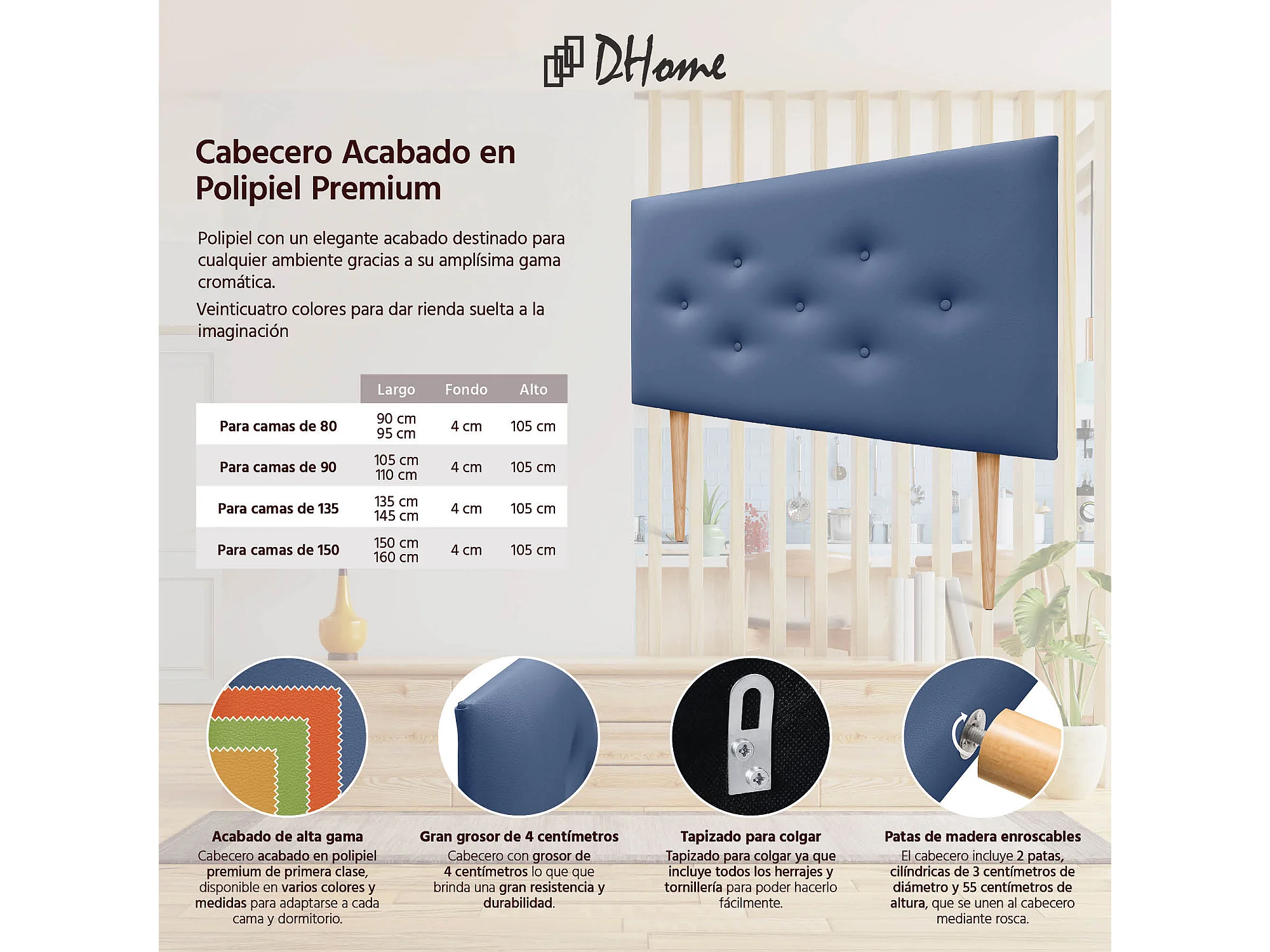 DHOME Tête de lit en simili cuir avec 3 rangées de boutons entrelacés Tête de lit rembourrée pour lit de luxe (Bleu, 95cm)