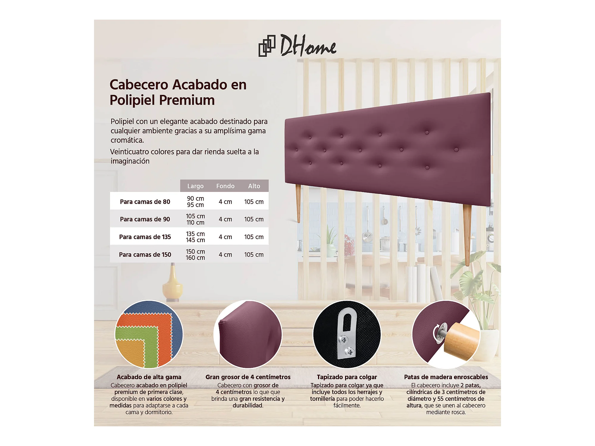 DHOME Tête de Lit en Similicuir avec 3 Rangées de Boutons Entrelacées Tête de Lit Rembourrée de Luxe (Bordeaux, 160cm)