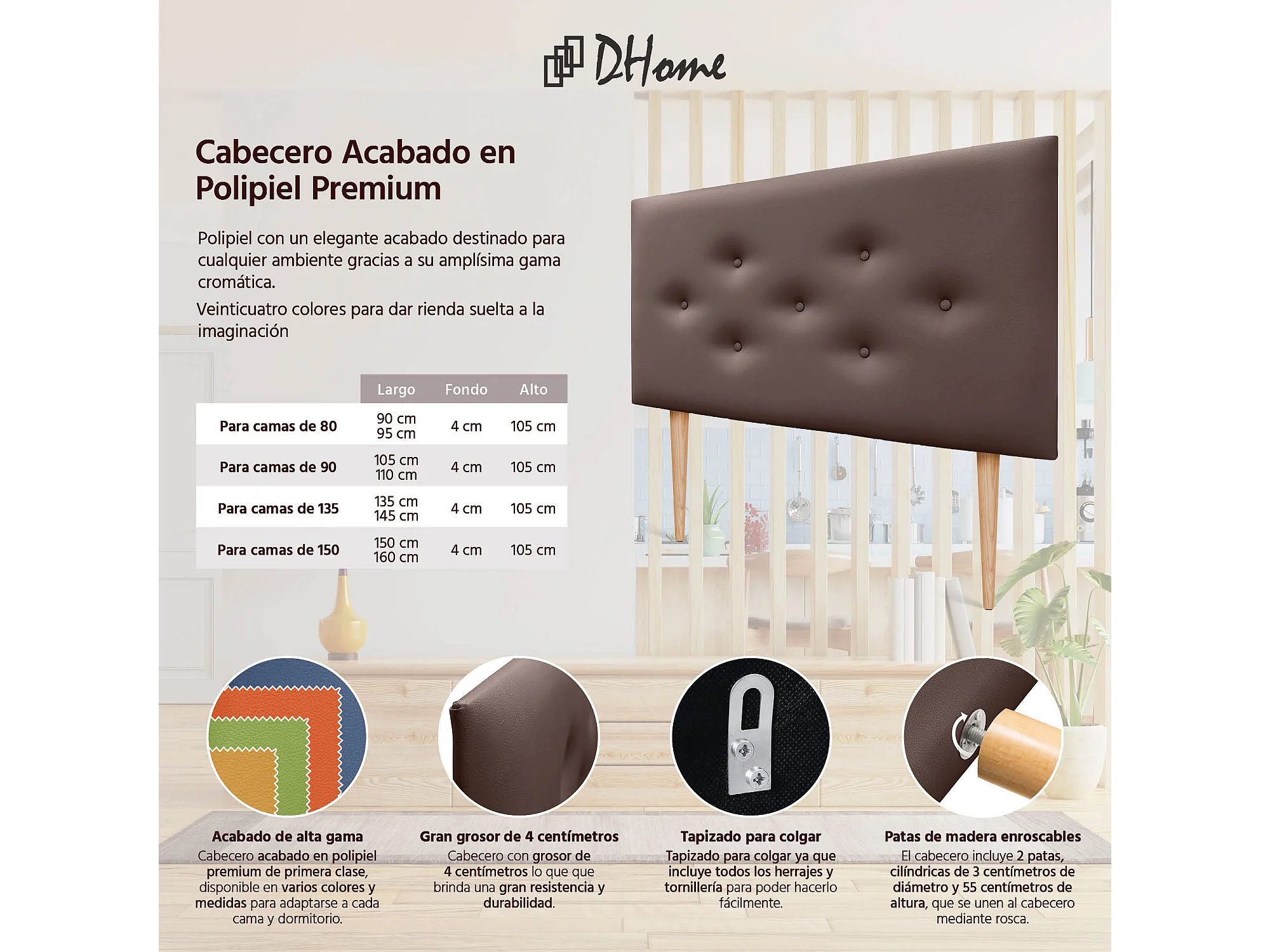 DHOME Tête de lit en simili cuir avec 3 rangées de boutons entrelacés Tête de lit rembourrée pour lit de luxe (Chocolat, 95cm)