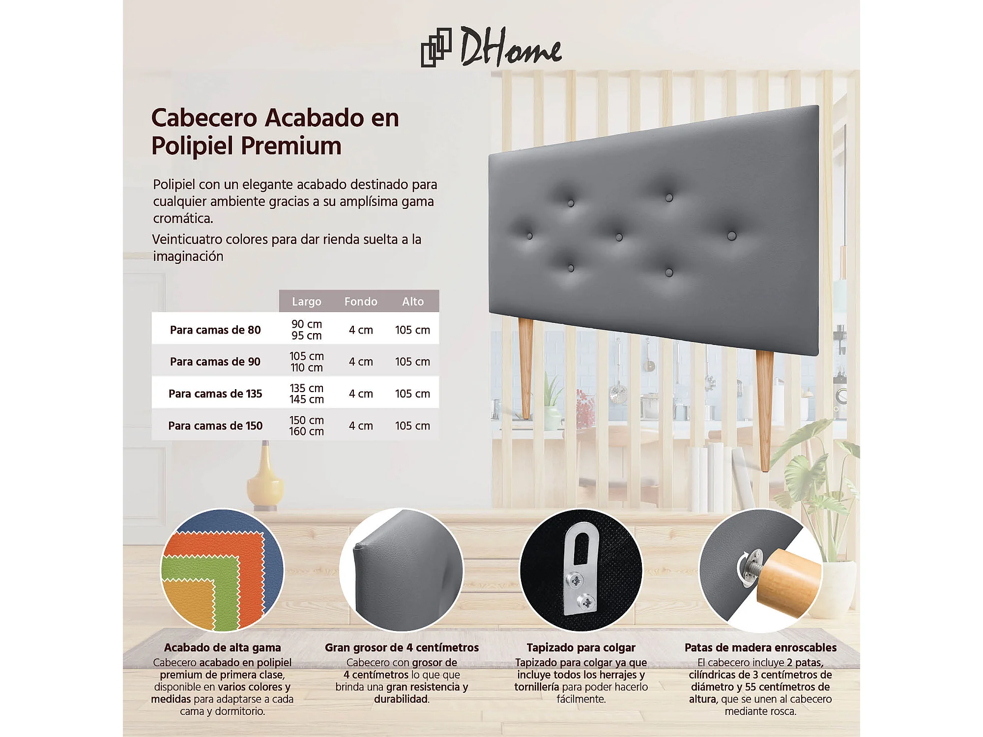 DHOME Tête de lit en simili cuir avec 3 rangées de boutons entrelacés Tête de lit rembourrée pour lit de luxe (Gris, 105cm)