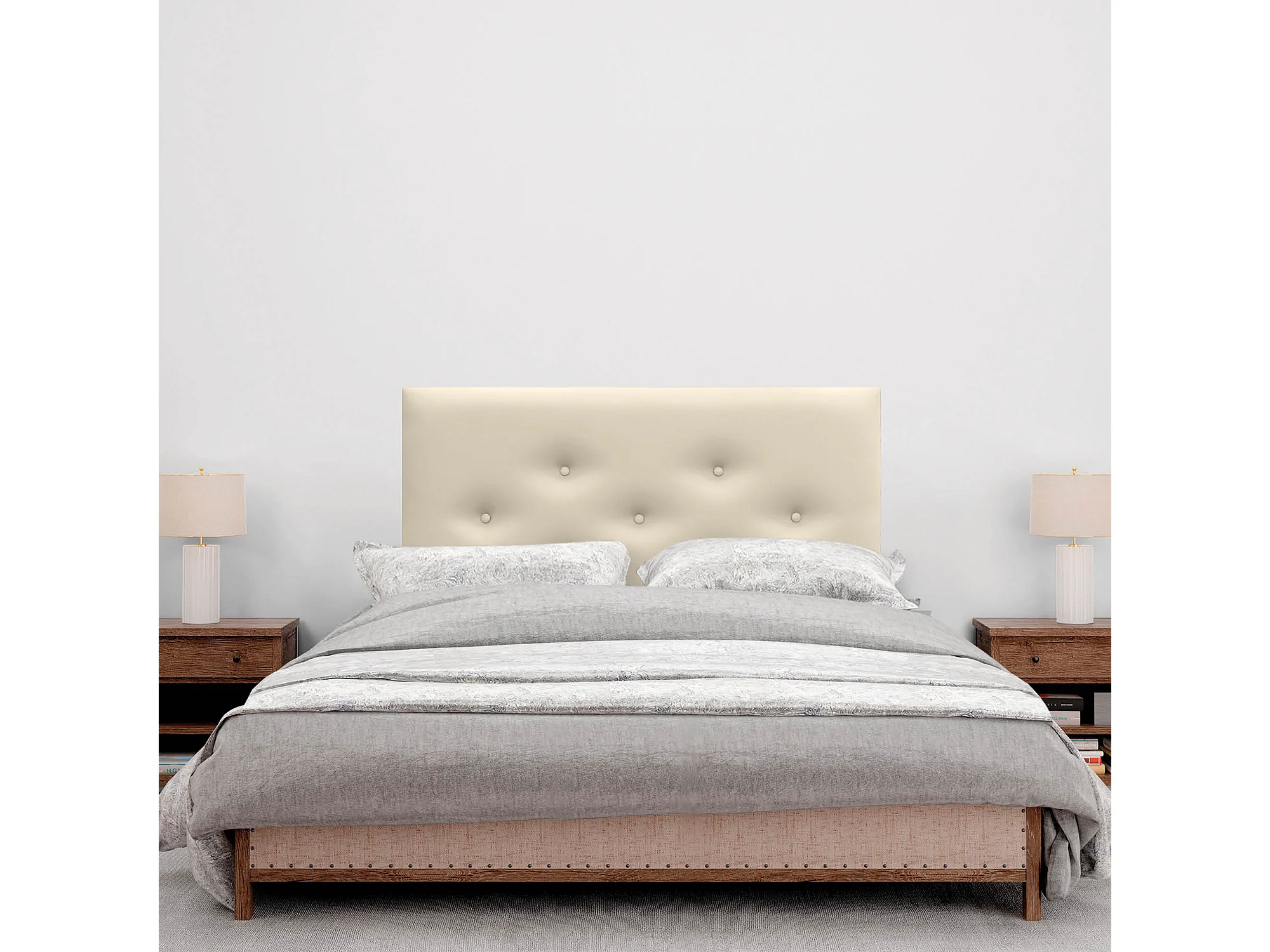 DHOME Tête de Lit en Similicuir avec 3 Rangées de Boutons Entrelacées Tête de Lit Rembourrée de Luxe (Beige, 220cm (2 pièces))