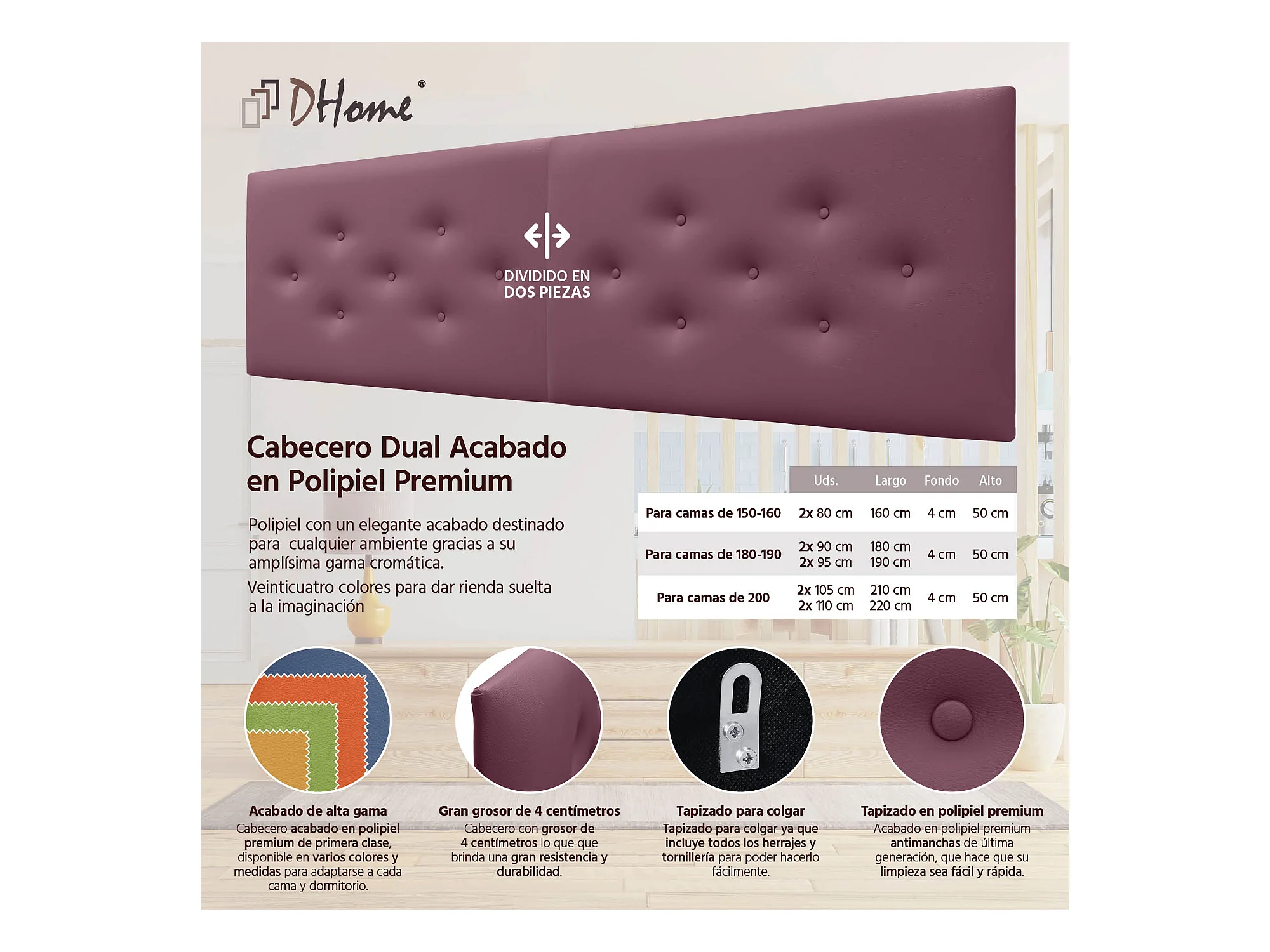 DHOME Tête de Lit en Similicuir avec 3 Rangées de Boutons Entrelacées Tête de Lit Rembourrée de Luxe (Bordeaux, 210cm (2 pièces))
