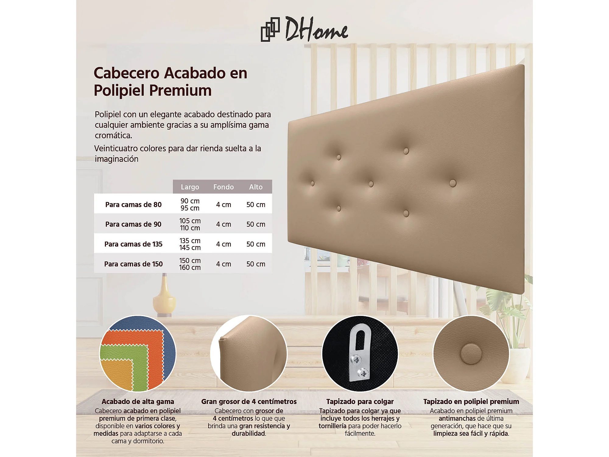 DHOME Tête de Lit en Similicuir avec 3 Rangées de Boutons Entrelacées Tête de Lit Rembourrée de Luxe (Argile, 95cm)