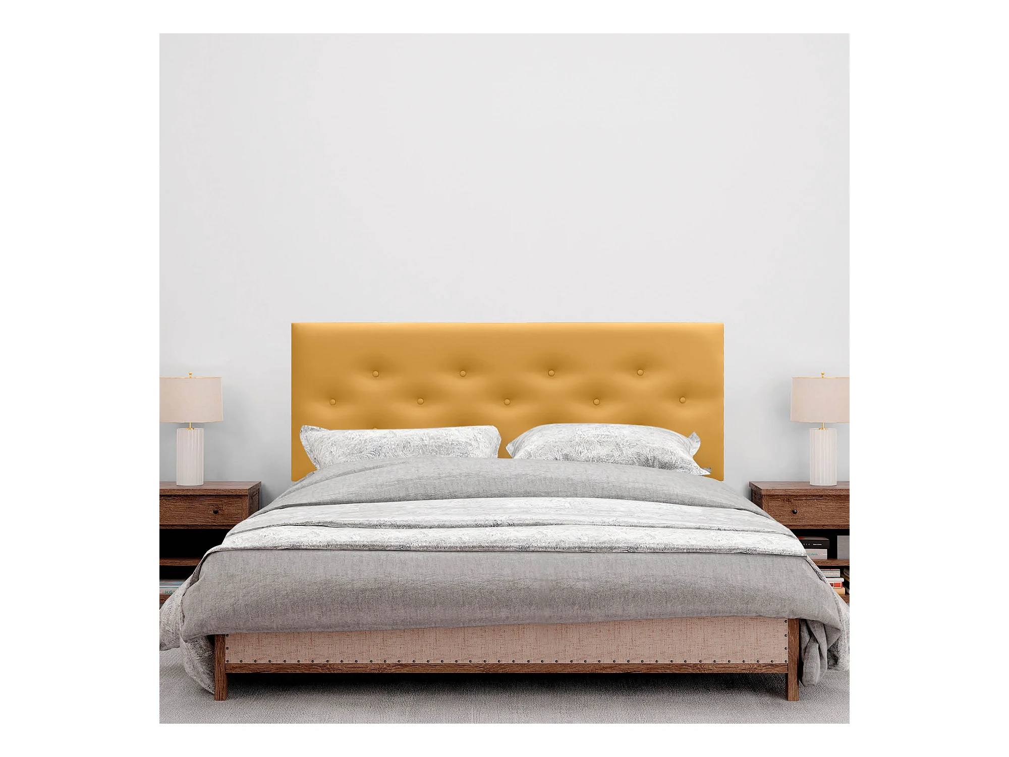 DHOME Tête de lit en simili cuir avec 3 rangées de boutons entrelacés Tête de lit rembourrée pour lit de luxe (Moutarde, 105cm)