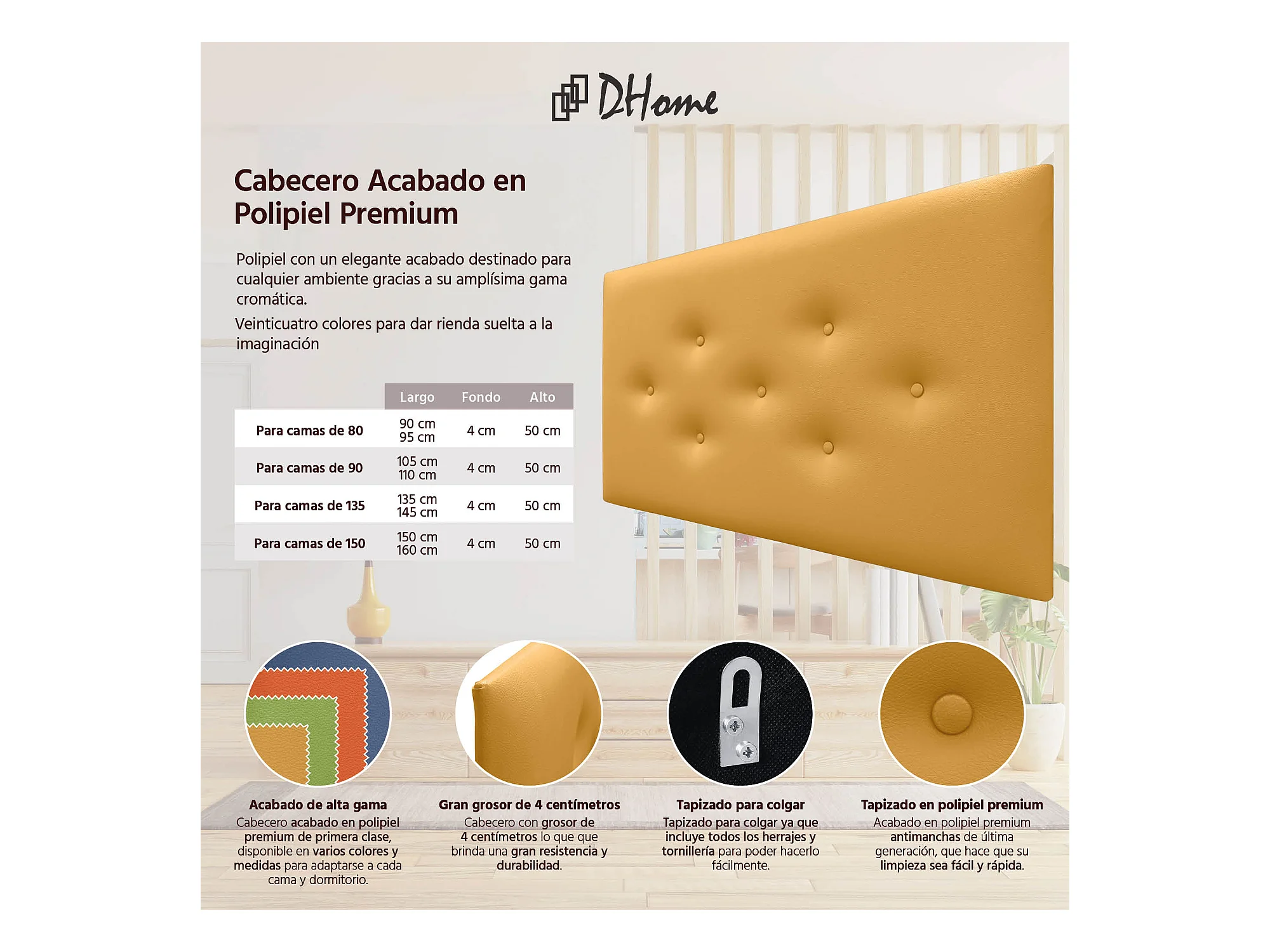 DHOME Tête de lit en simili cuir avec 3 rangées de boutons entrelacés Tête de lit rembourrée pour lit de luxe (Moutarde, 105cm)