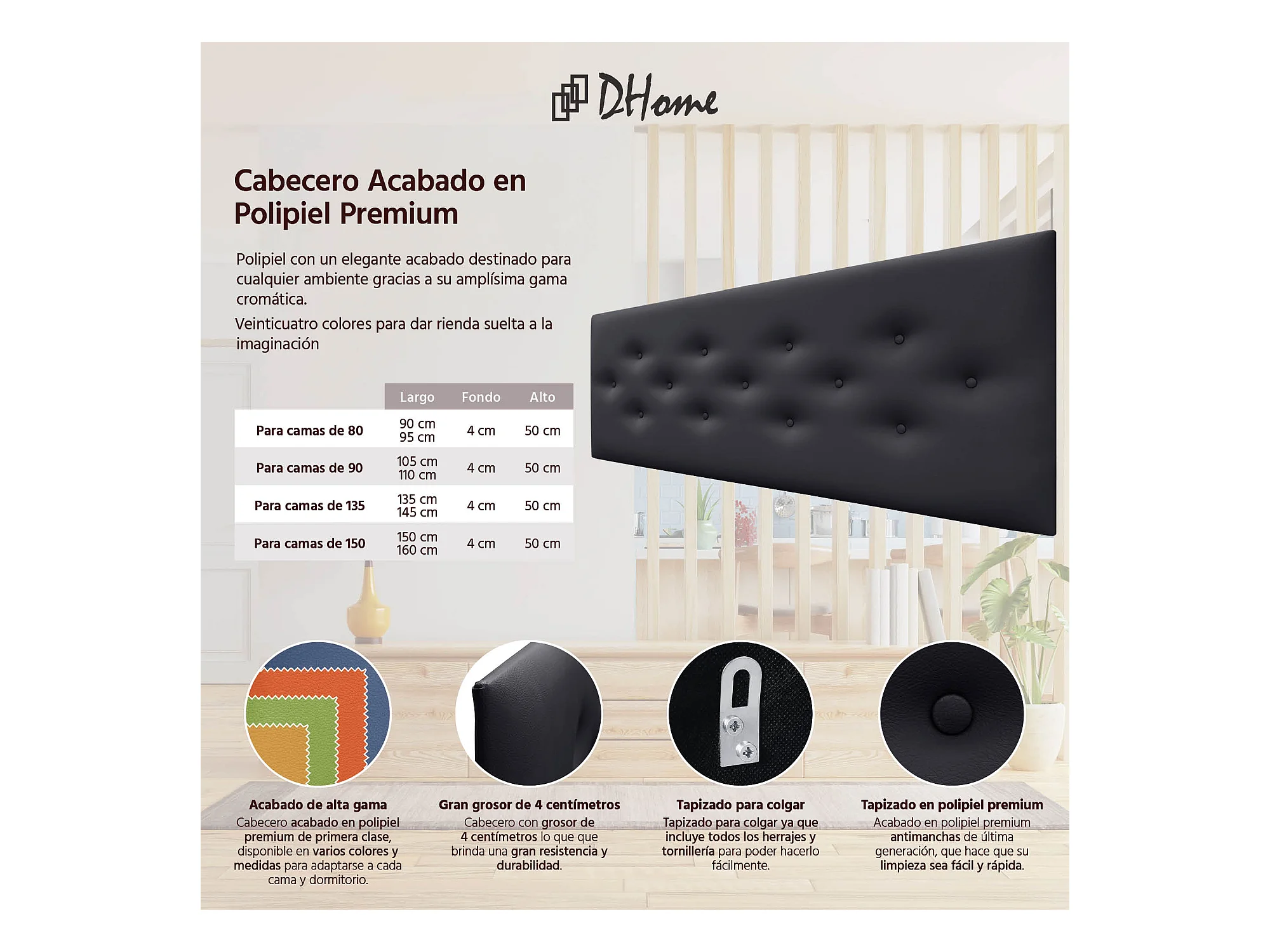 DHOME Tête de lit en simili cuir avec 3 rangées de boutons entrelacés Tête de lit rembourrée pour lit de luxe (Noir, 150cm)