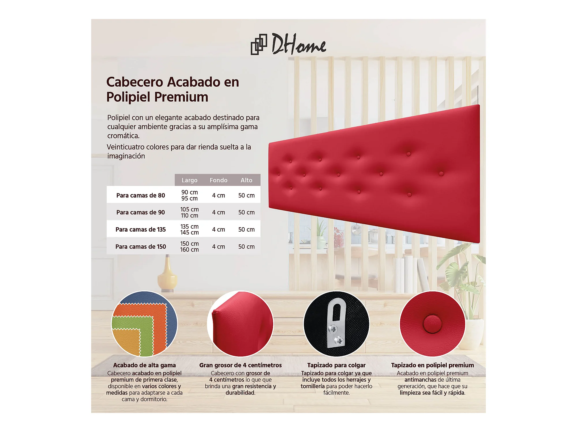 DHOME Tête de Lit en Similicuir avec 3 Rangées de Boutons Entrelacées Tête de Lit Rembourrée de Luxe (Rouge, 135cm)